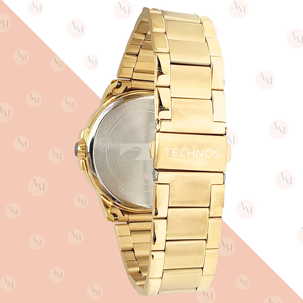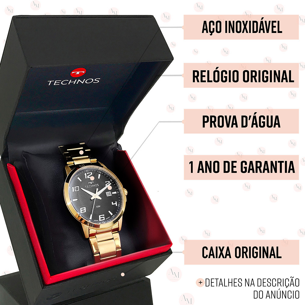 Relógio Technos Masculino Dourado Preto Original 1 Ano de Garantia