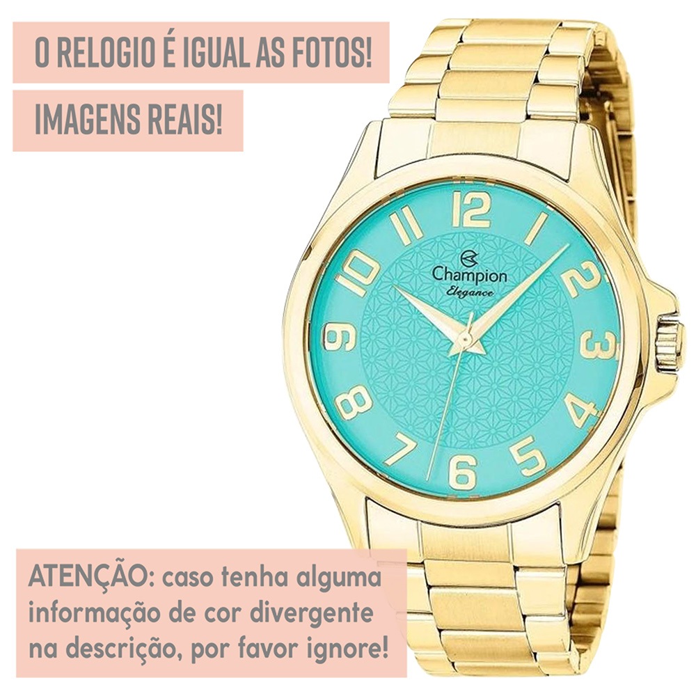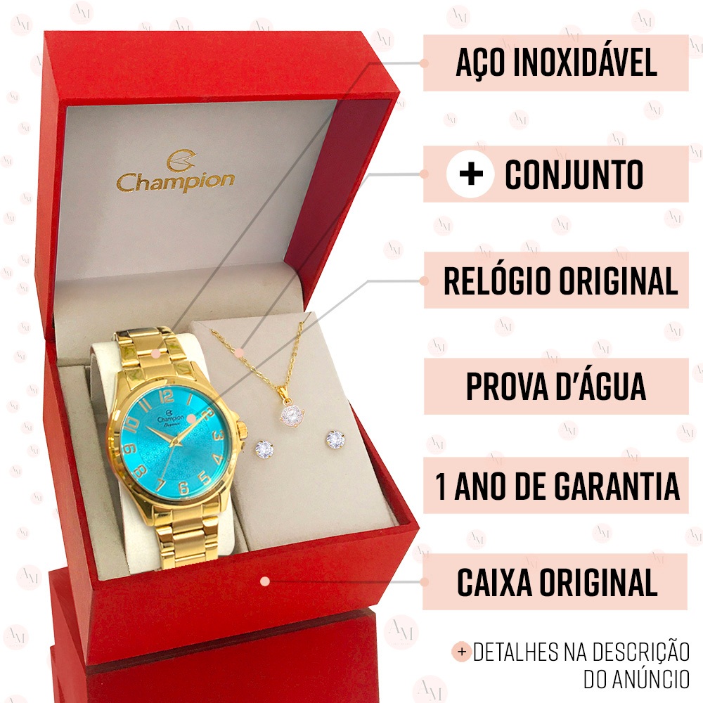 Relógio Champion Feminino Dourado Prova d'água com 1 ano de garantia e colar e brincos