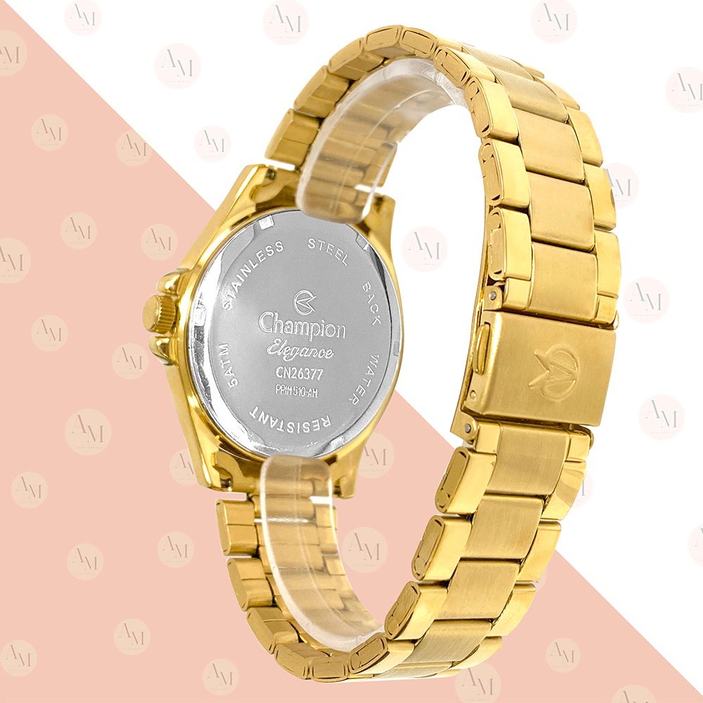 Relógio Champion Feminino Dourado Azul Prova d'água com 1 ano de garantia e colar e brincos