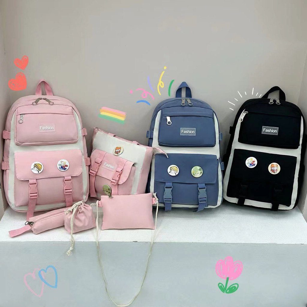 KIT 5 Estudantes Adolescentes Meninas Mochila de Viagem Casual Coreia Tour Grande Capacidade