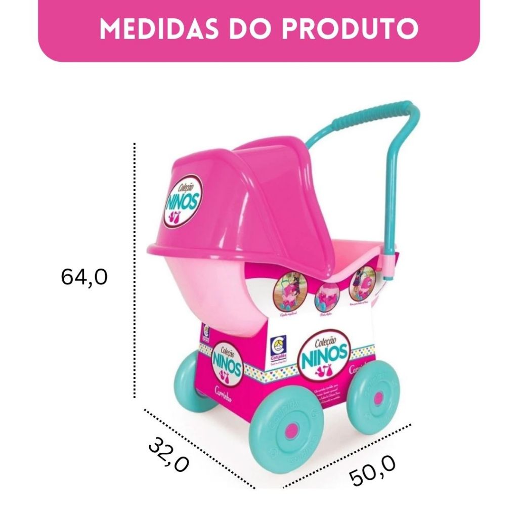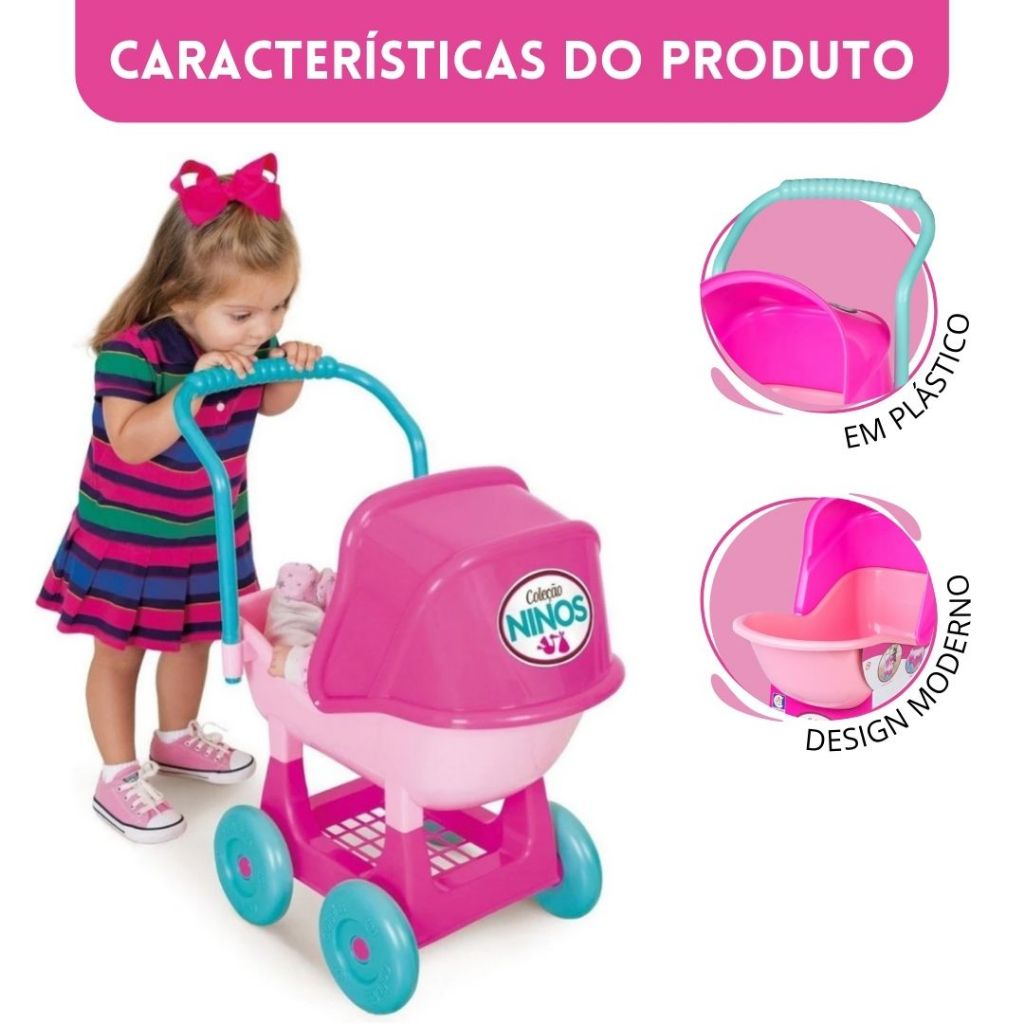 Carrinho de Boneca da Coleção Ninos com Capota Regulável Alive Reborn - Cotiplás