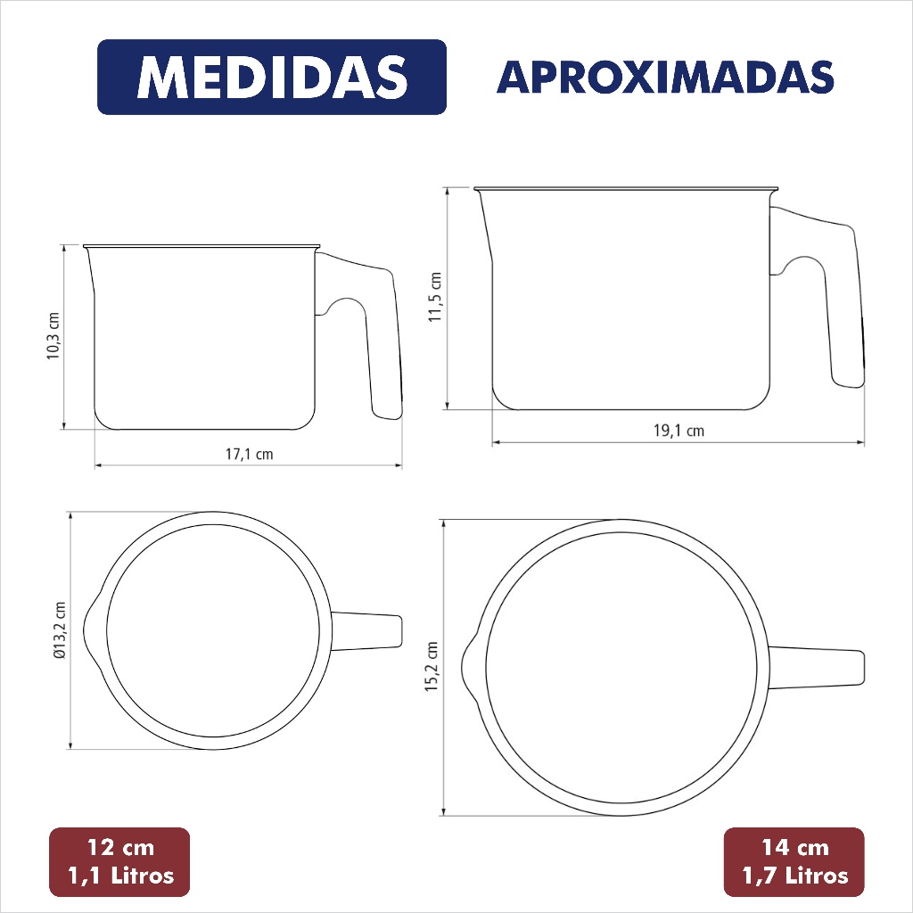Canecão Fervedor Leiteira Antiaderente 12 cm 1,1 Litro ou 14 cm 1,7 Litros Cozinha Água - Tramontina