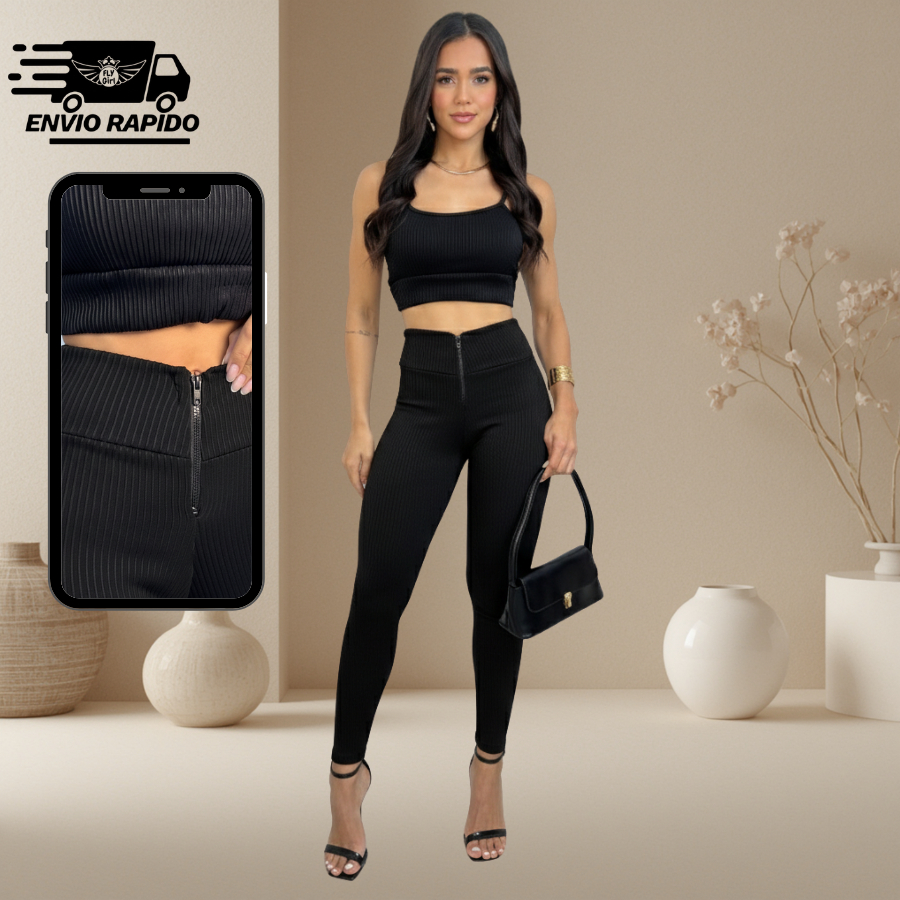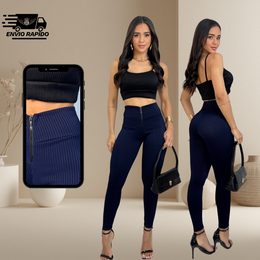 Calça Legging Feminina Canelada 3D Modeladora Premium Cintura Alta Zíper