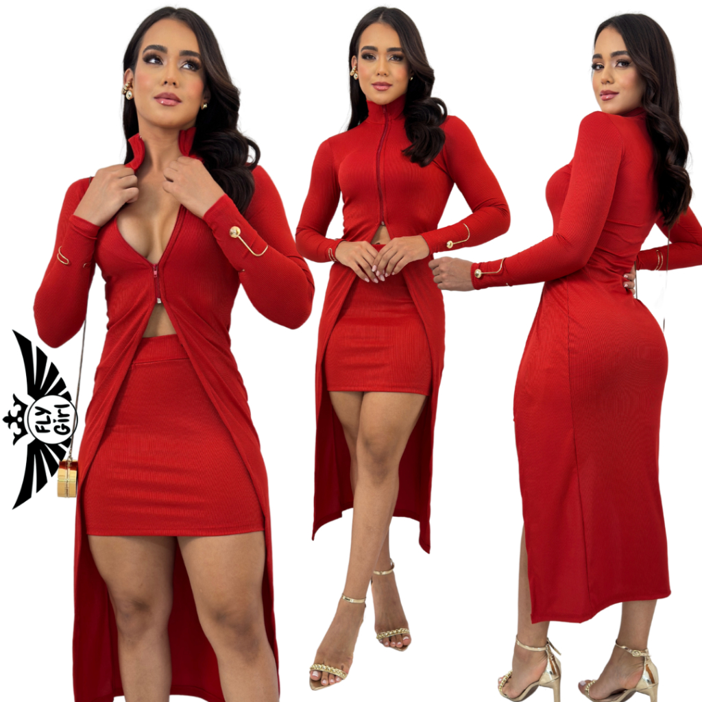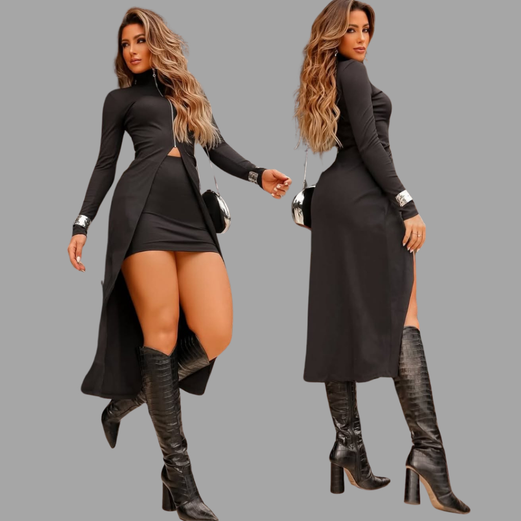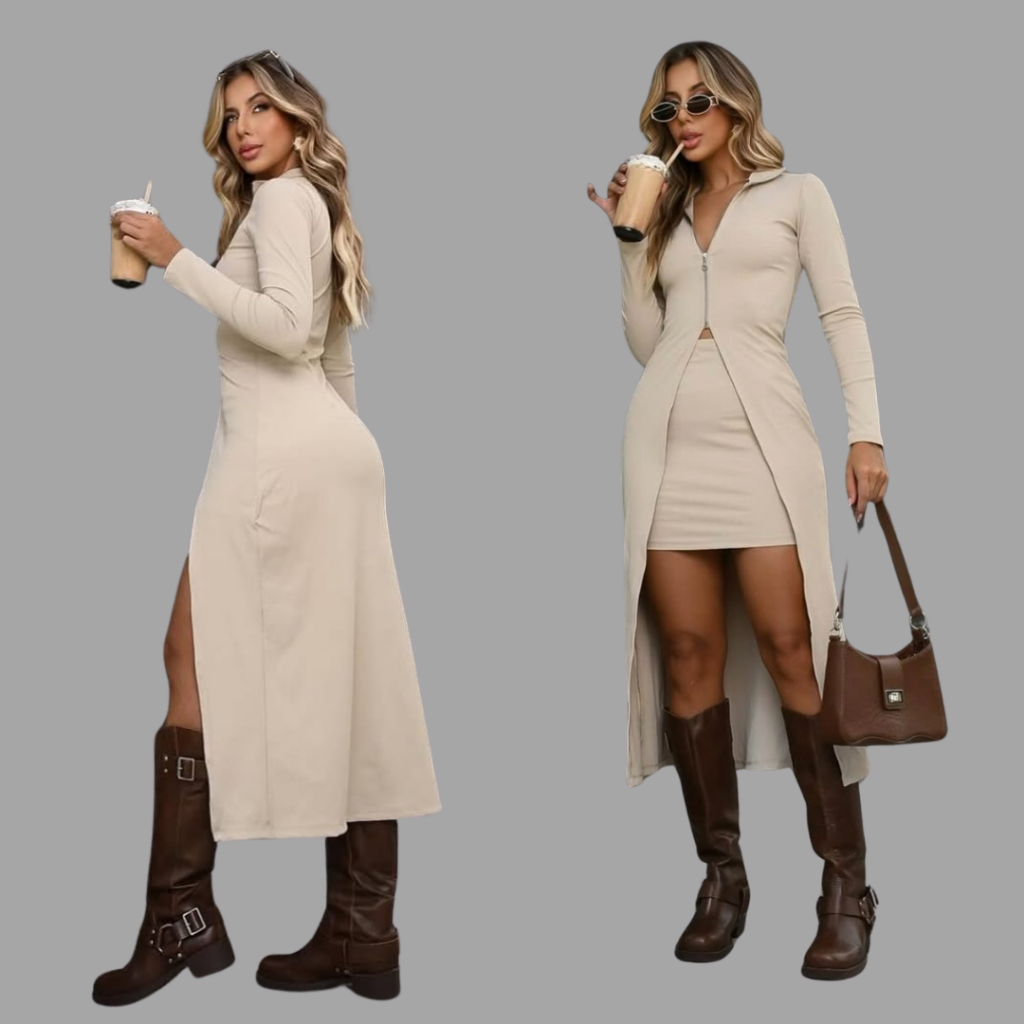 Conjunto Feminino Cardigan Sobretudo + saia curta Ribana