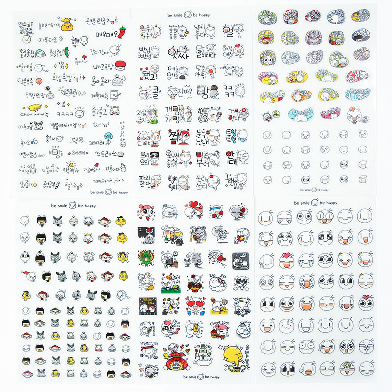 6 Folhas Bonito emoji PET Diário Etiqueta Decorativa Papelaria Álbum Adesivos