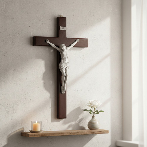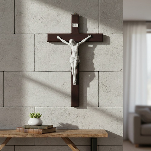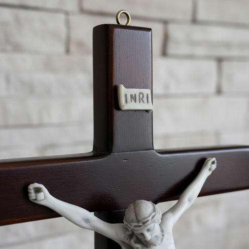 Crucifixo De Parede Marmore Com Madeira 30cm Cruz Lindo