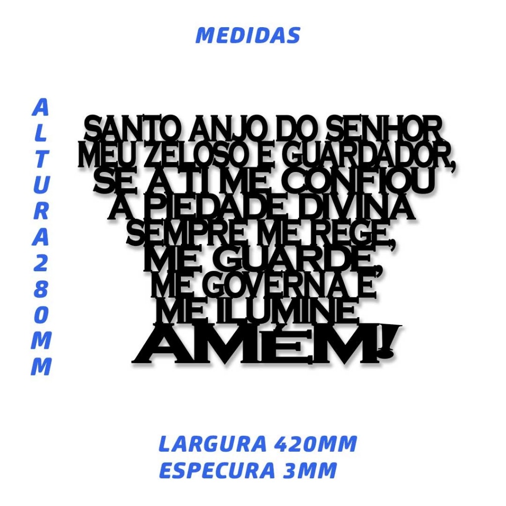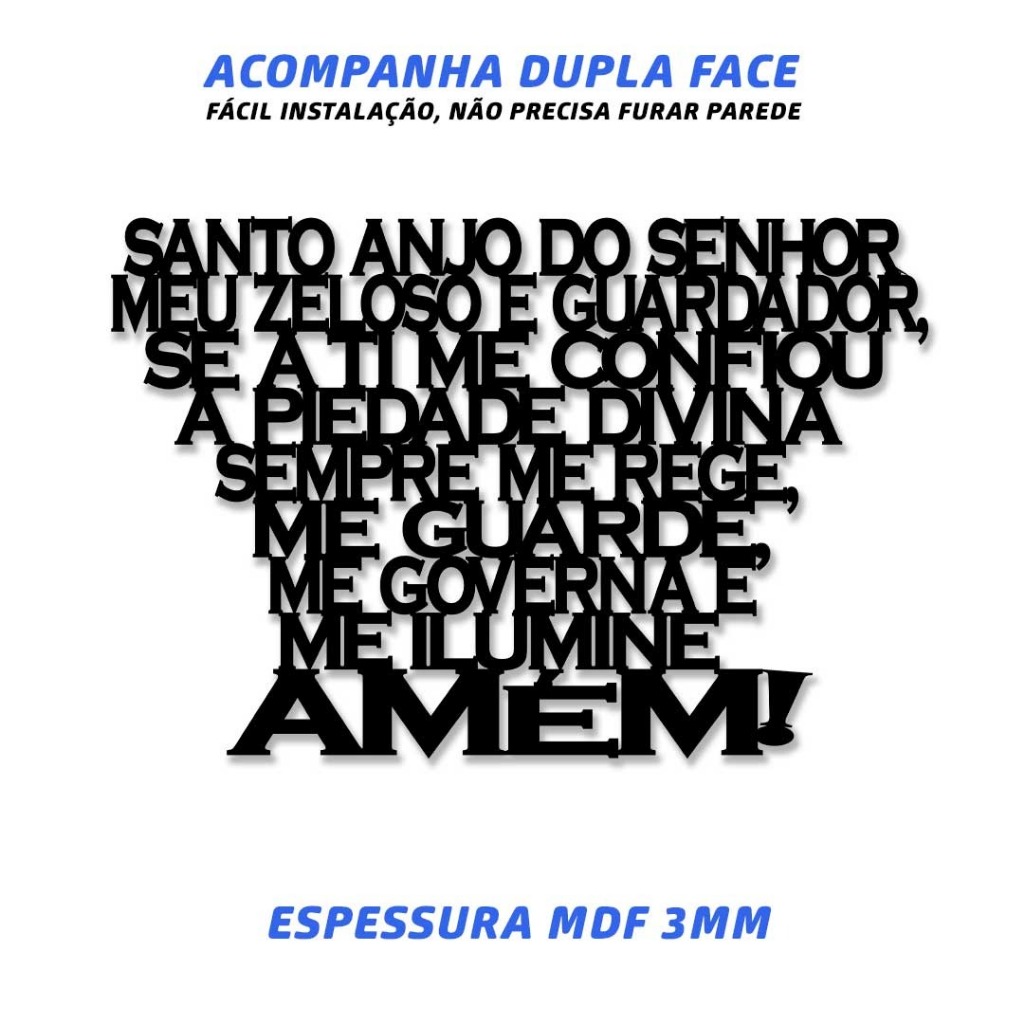 Painel Oração Santo Anjo Em Relevo MDF Premium 3mm na Cor Natural Cru ou Preto para Sala Quarto Parede