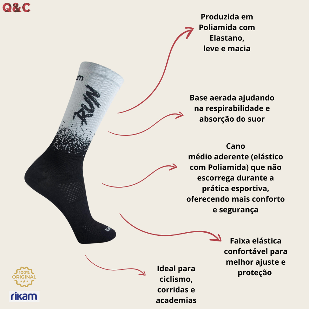 Meia Bike Alta Qualidade Corrida Ciclismo Performance - Rikam (Linha Premium)