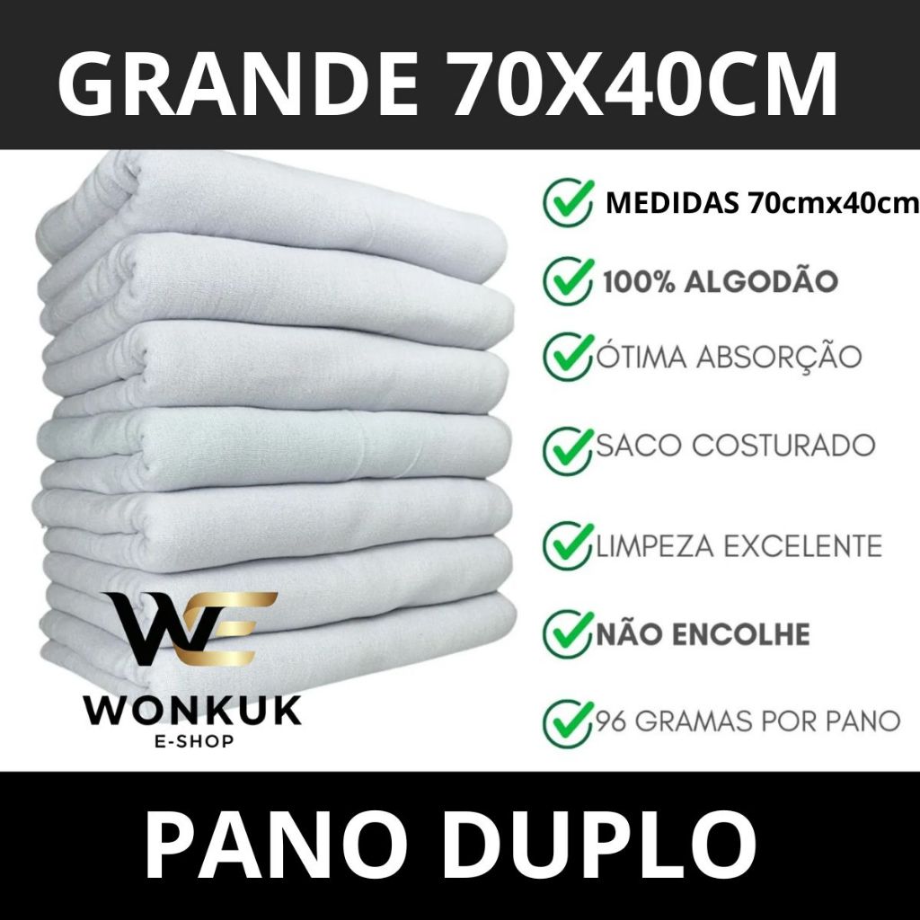 kit Pano De Chão Alvejado Branco grande Tamanho70x40 saco duplo pano de limpeza 100% algodão
