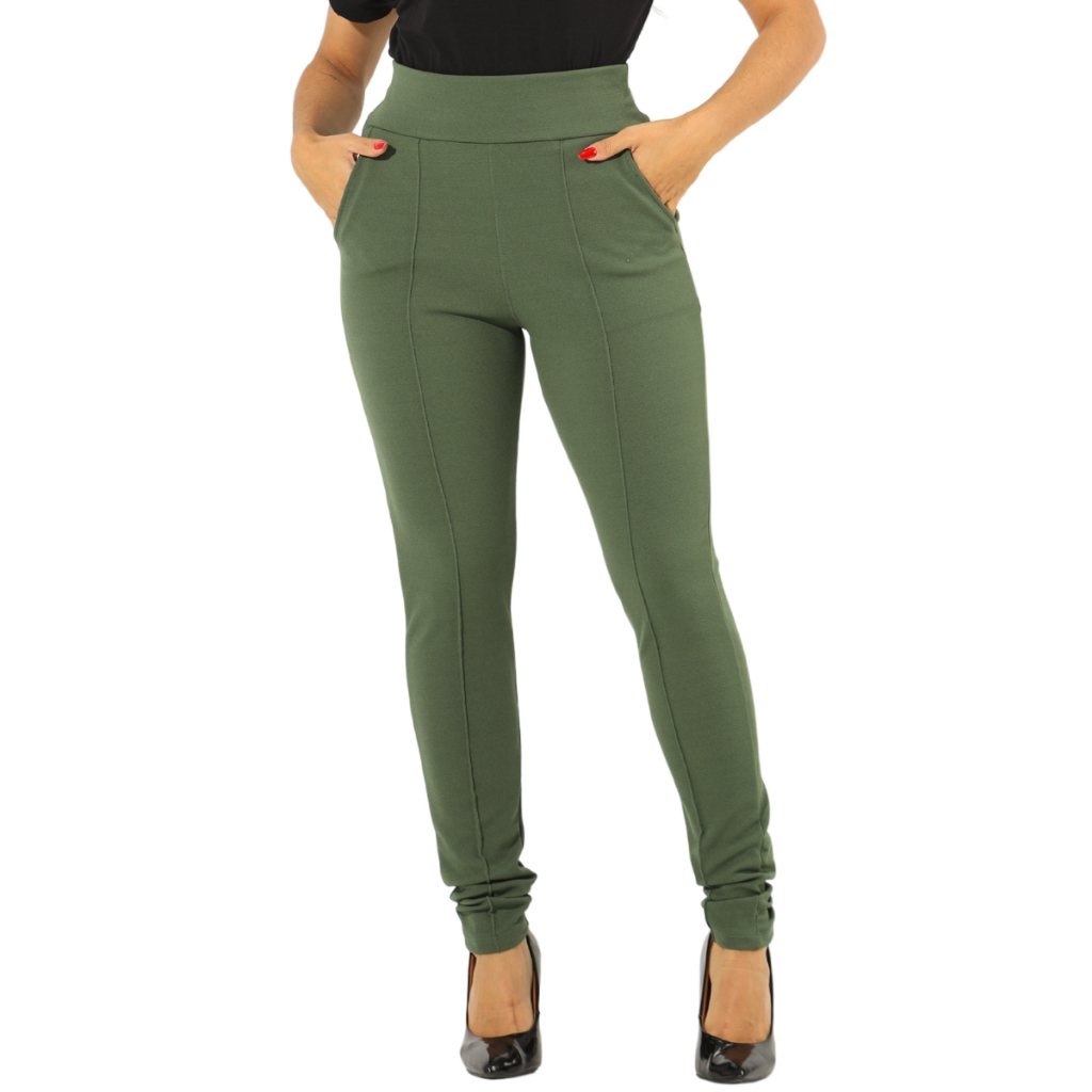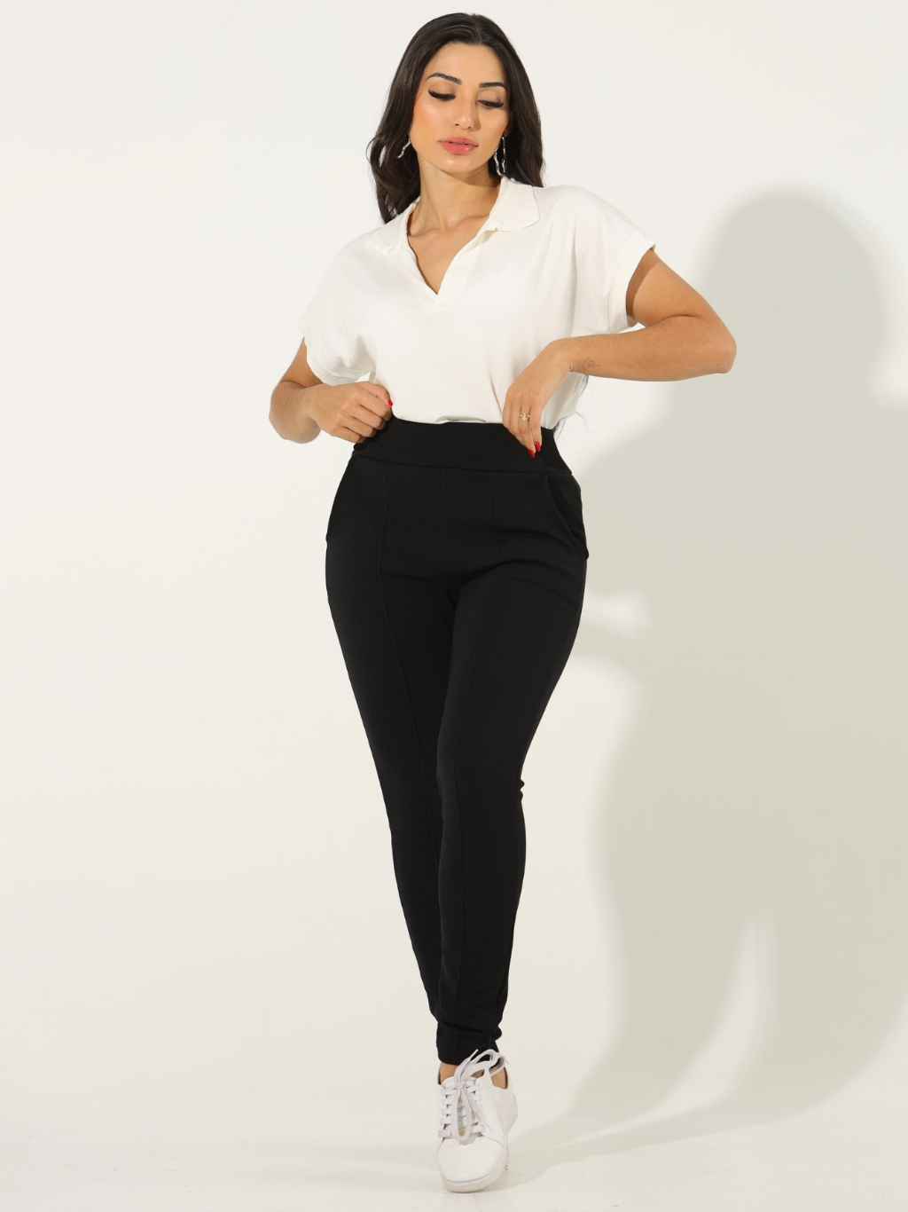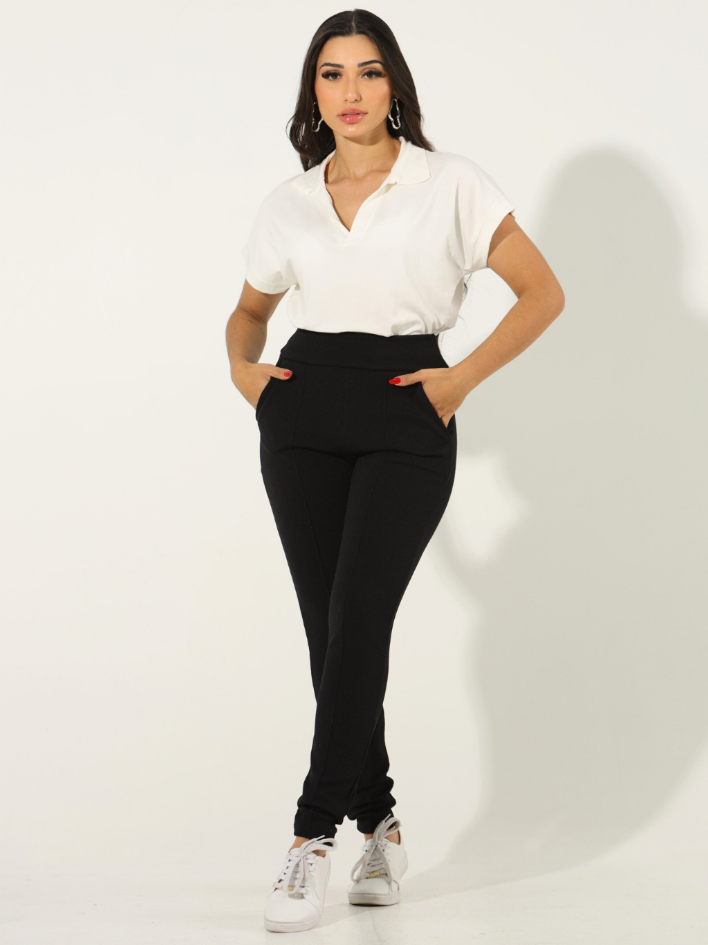 Calça Social Malha Crepe Cintura Alta Feminina Bolso Skinny