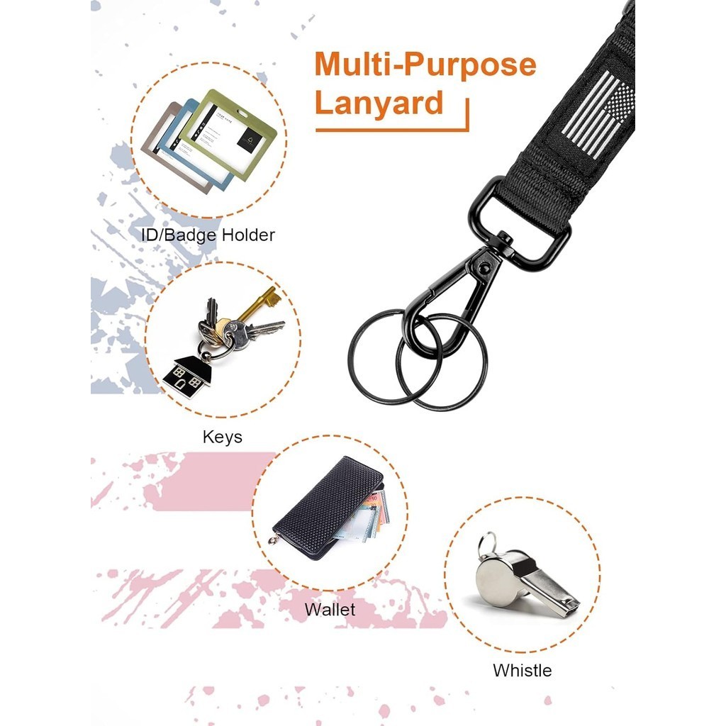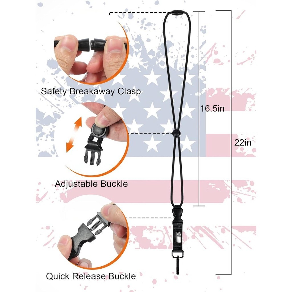 Lanyards Breakaway Para Crachás De Identificação-Lanyard De Segurança Com Bandeira Dos Eua , Alça De Pescoço Ajustável Porta-Cartões E Chaves , Preto , 1PCS