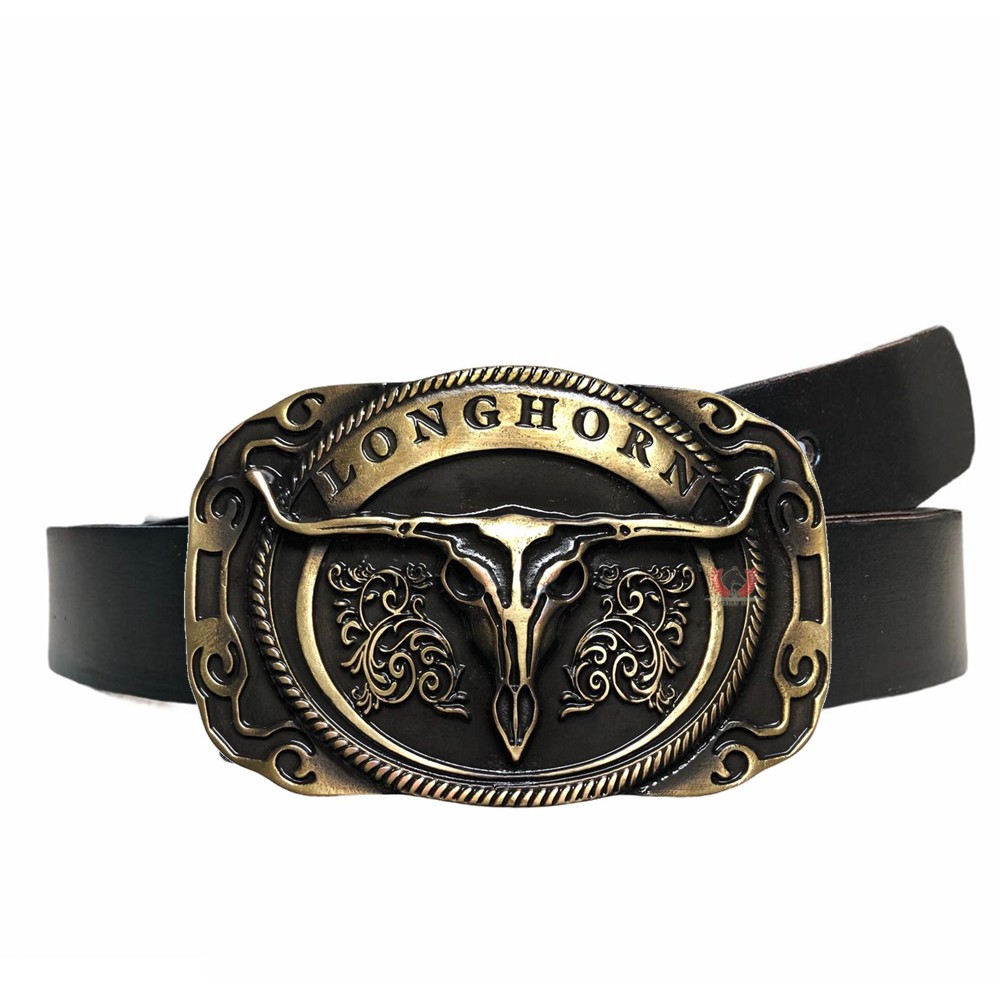 Cinto Country de couro legítimo unissex Com fivela Cowboy Texas Longhorn