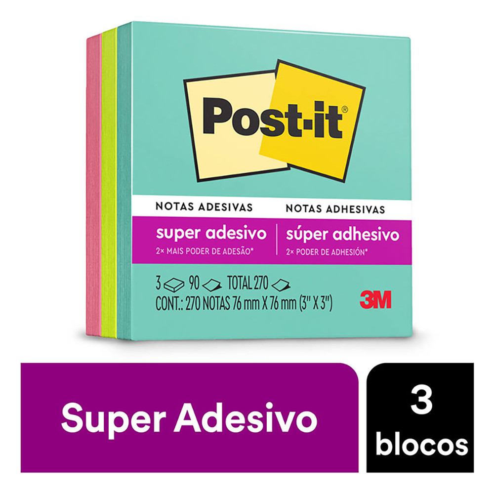 Bloco de notas adesivas Post-it coleção Supernova 3 blocos de 76x76mm 270 folhas 3M