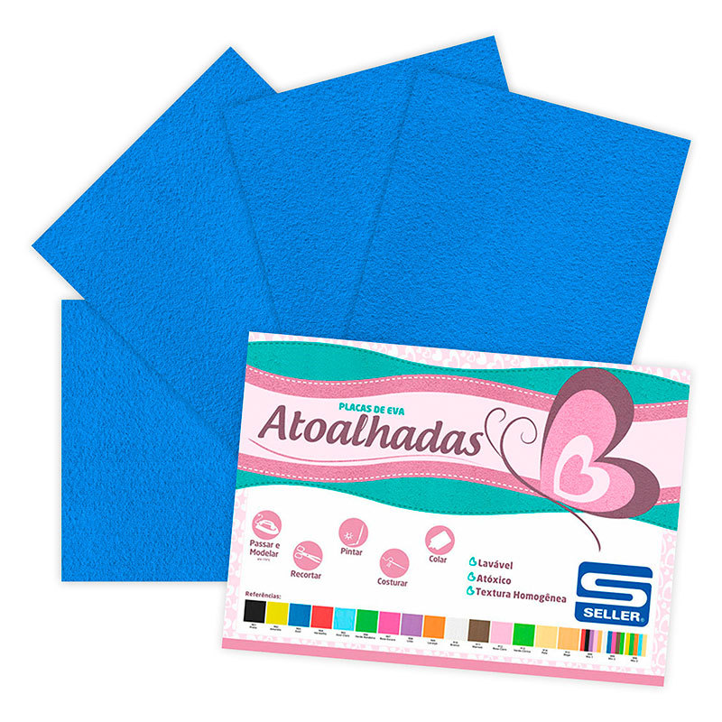 Placa de EVA 40x60cm atoalhado Azul pacote com 5 folhas Seller