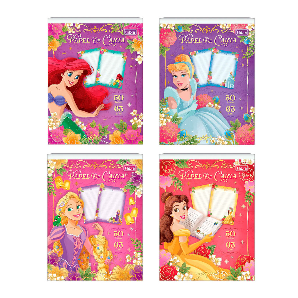 Bloco de papel carta com 50 folhas Princesas Tilibra