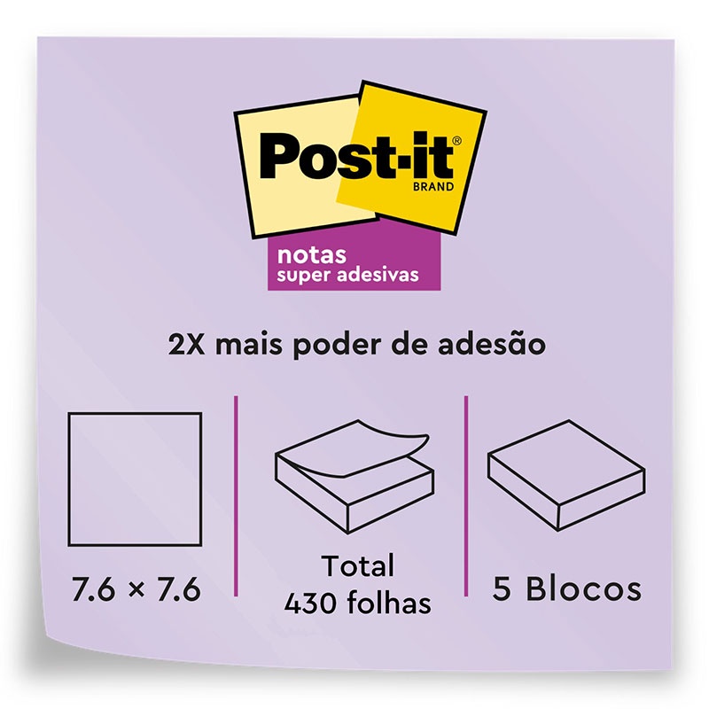 Bloco de notas super adesivas Post-it coleção Serenidade 5 blocos de 76x76mm 450 folhas 3M