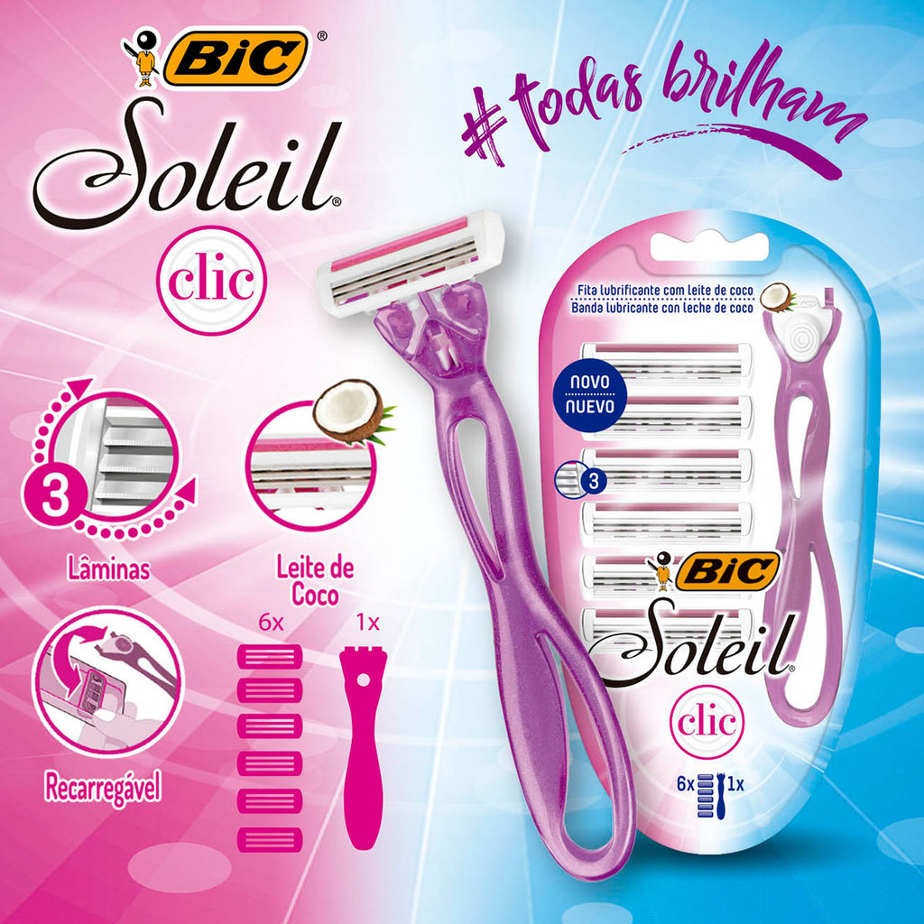 Barbeador descartável Soleil Clic recarregável Rosa + 6 lâminas Bic