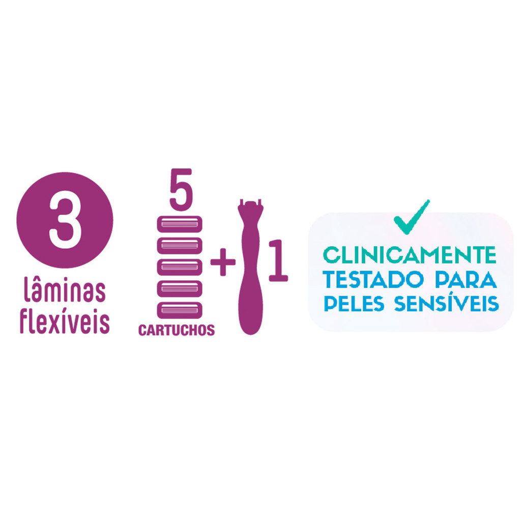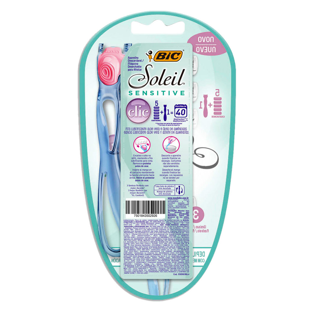 Barbeador descartável Soleil Clic Sensitive recarregável Azul + 5 lâminas Bic