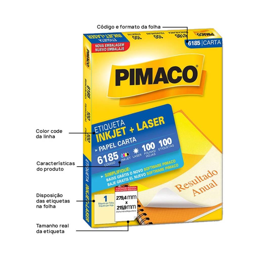 Etiqueta inkjet/laser carta 6185 com 100 folhas Pimaco