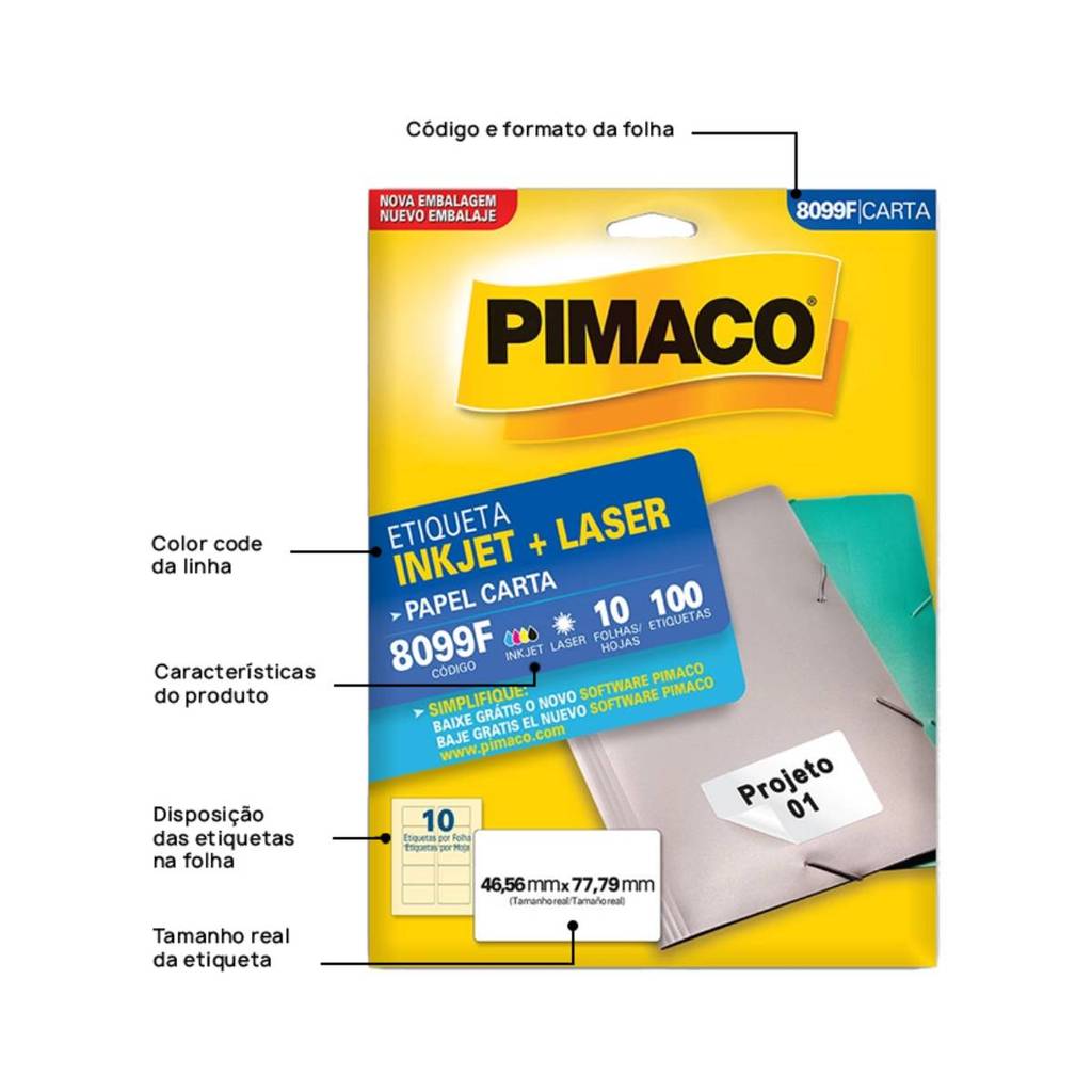 Etiqueta inkjet/laser carta 8099F com 10 folhas Pimaco
