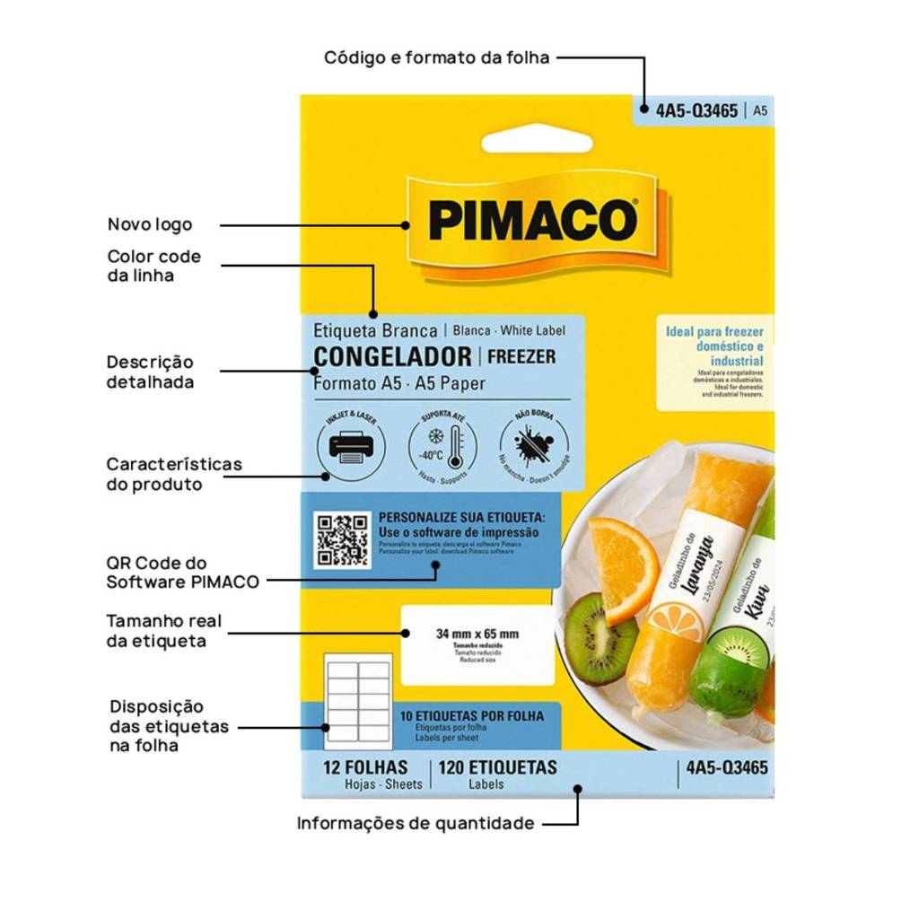 Etiqueta inkjet/laser para congelador e Freezer 4A5Q3465 com 12 folhas Pimaco