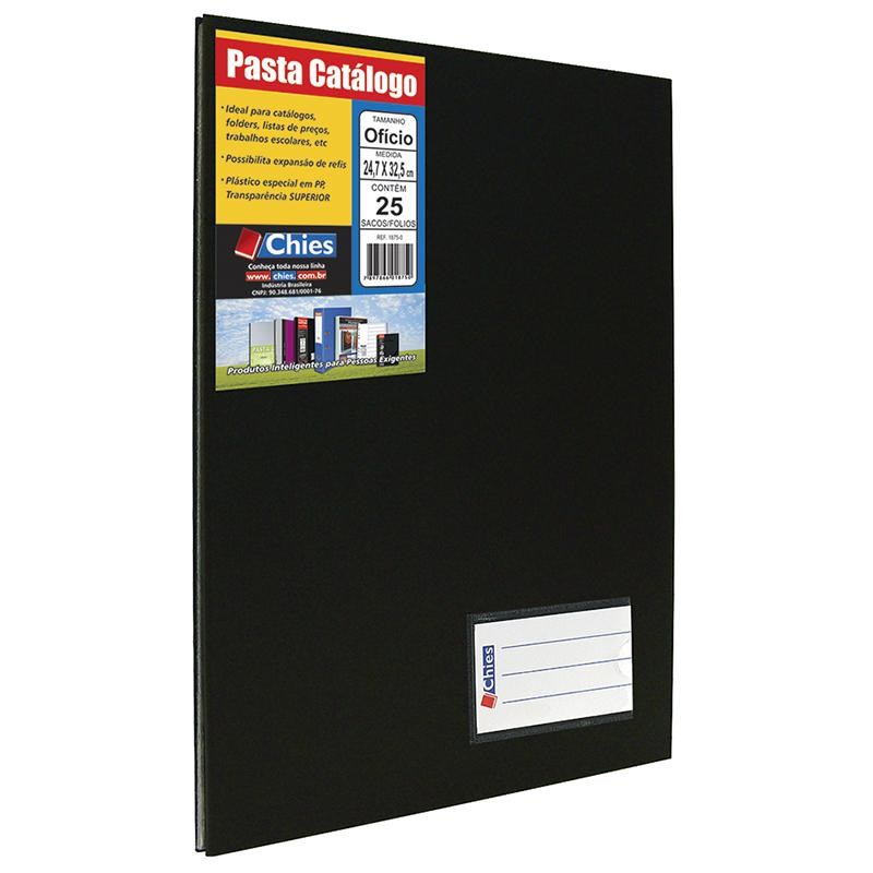 Pasta catálogo ofício 159 Preta com 25 plásticos Hemon