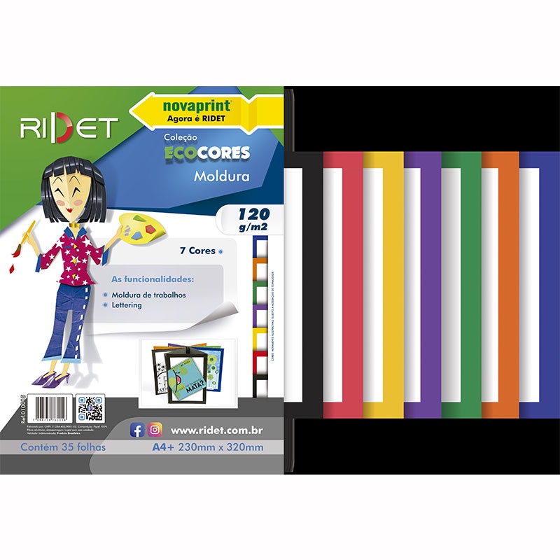 Bloco ecocores moldura 120g 230x320mm 35fls 7 cores 010015 Novaprint / Ridet
