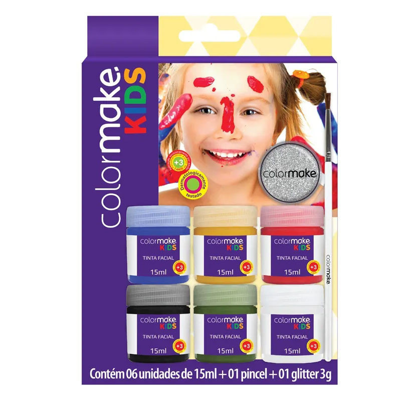 Tinta líquida facial kids 6 cores 1 pincel + 1 glitter 1002 Colormake
