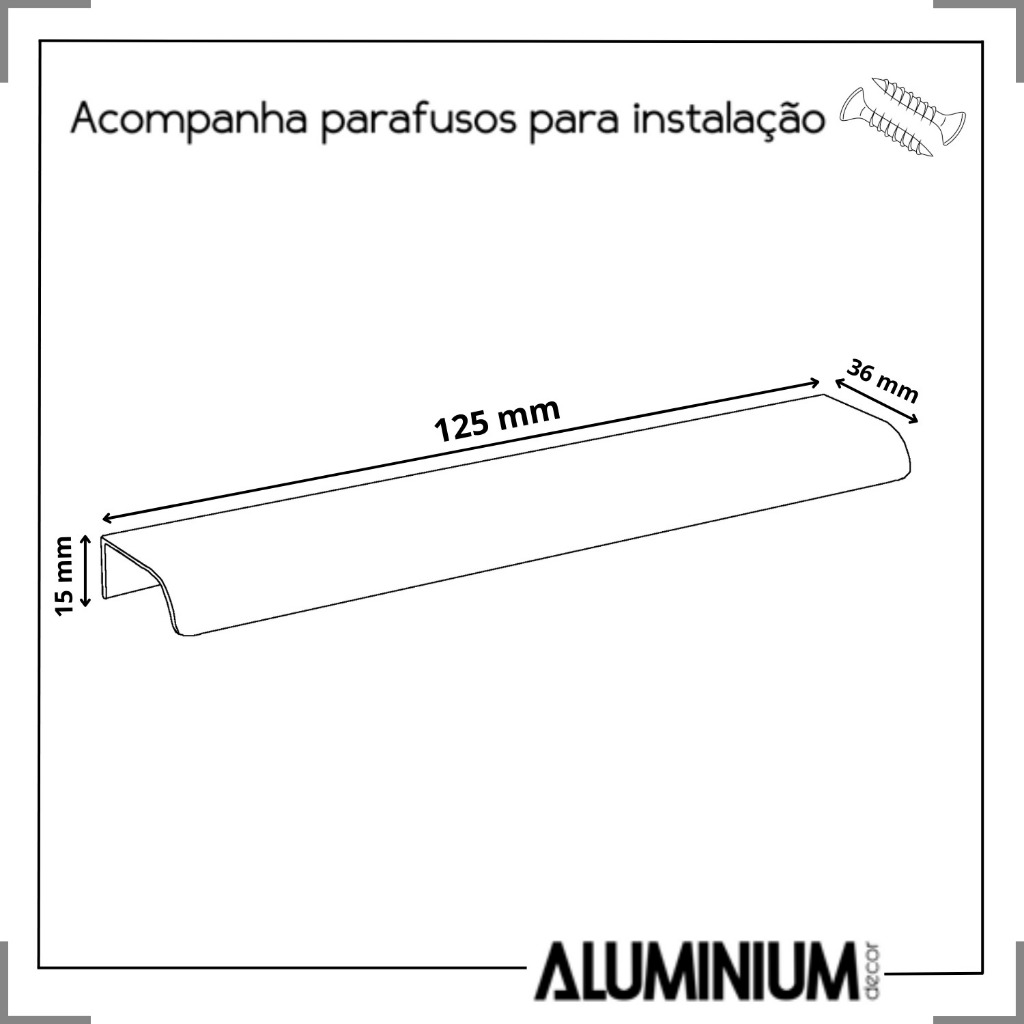 Kit 10 Puxadores para Móveis Wave Reto Alumínio Champanhe 125mm Aluminium Decor