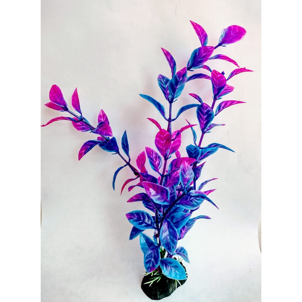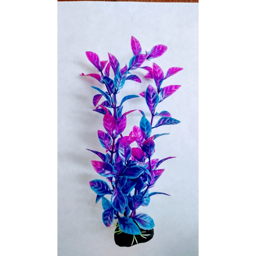 Planta Artificial Aquário 17cm violeta e azul Enfeite LXS721