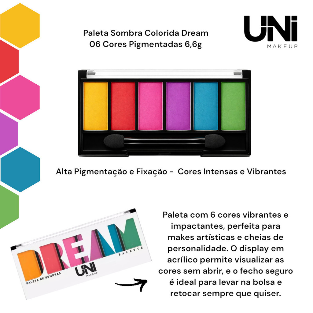 Paleta Sombra Colorida Dream 06 Cores Pigmentadas Uni Makeup