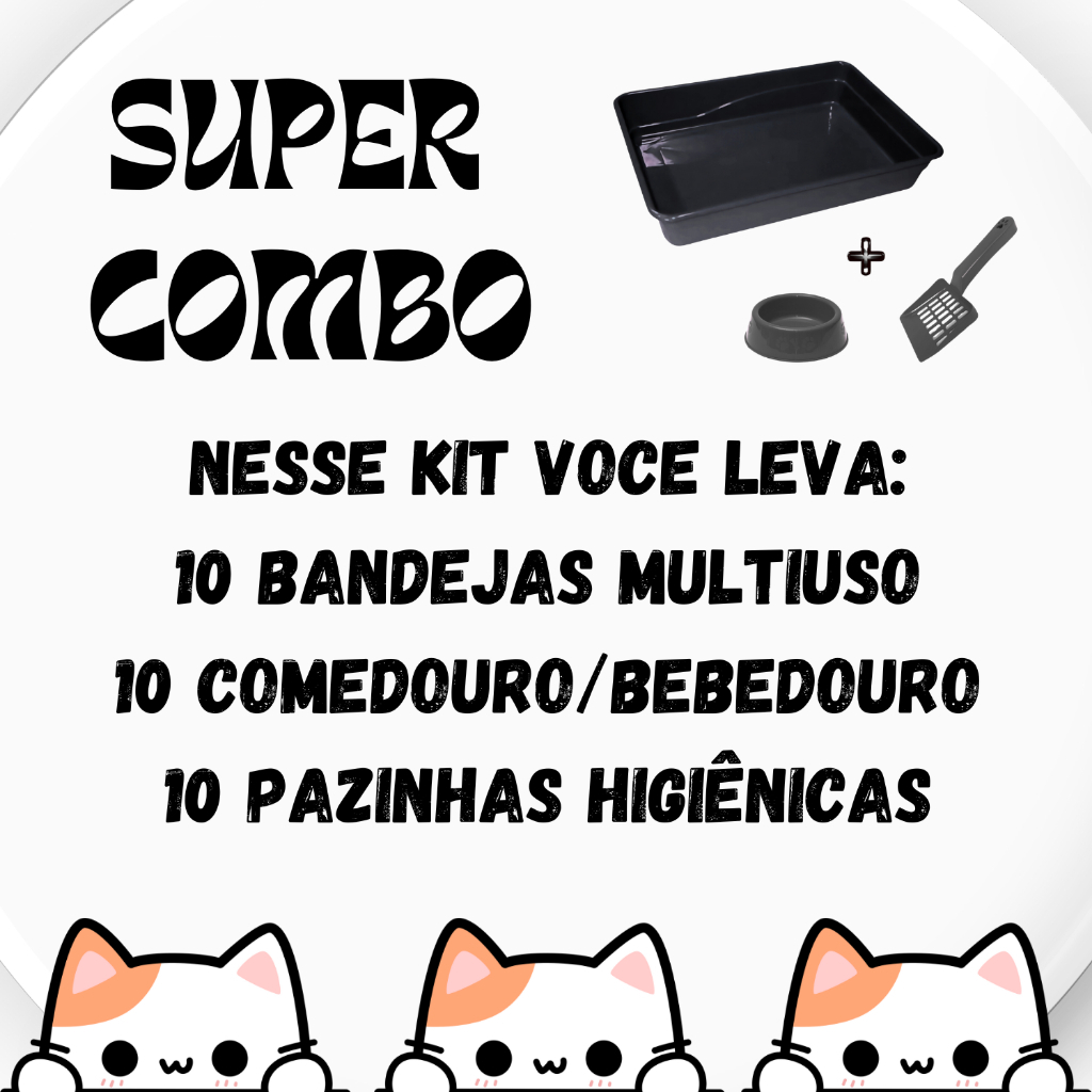 Kit 10 Unidades de Cada Bandeja + Pazinha + Comedouro Combo Bandejas Multiuso Gato
