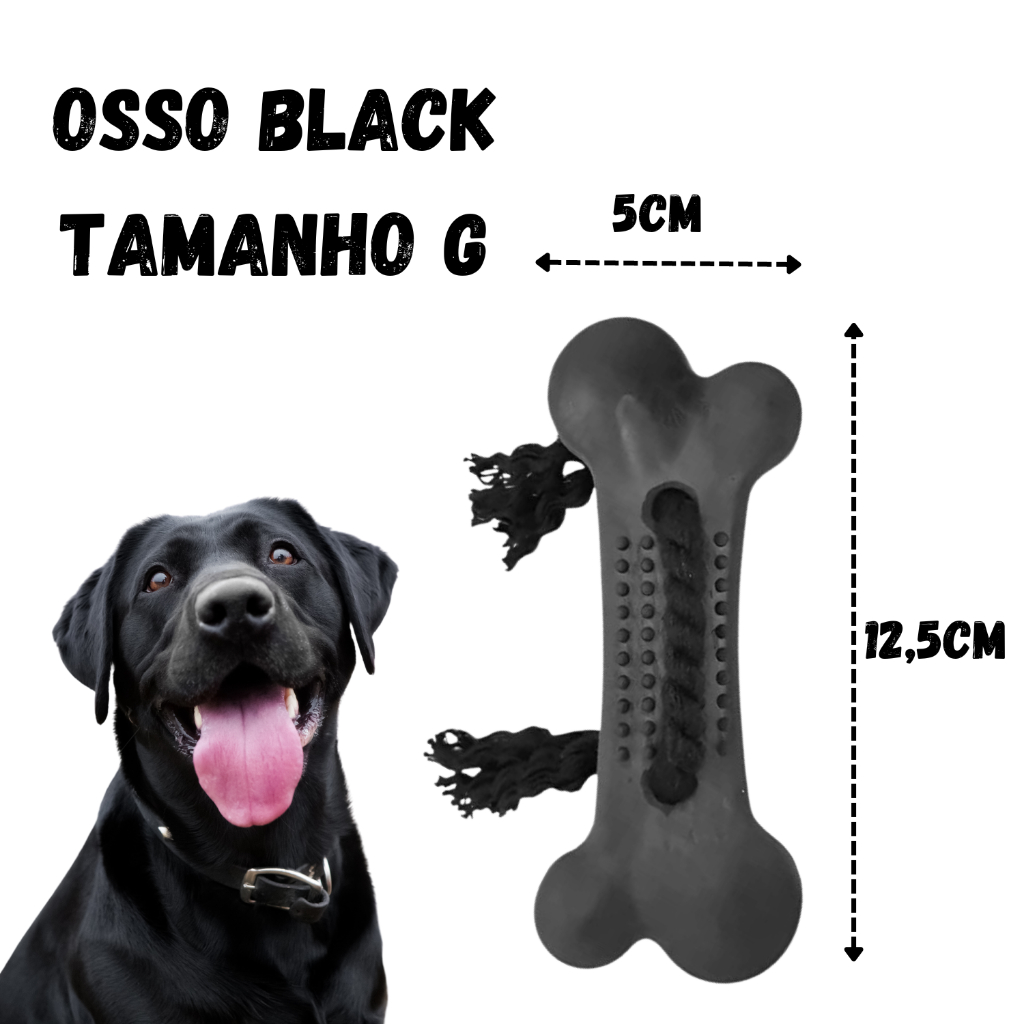 3 Osso Grande Pet Brinquedo Mordedor Cachorro Cor PRETO Maciço