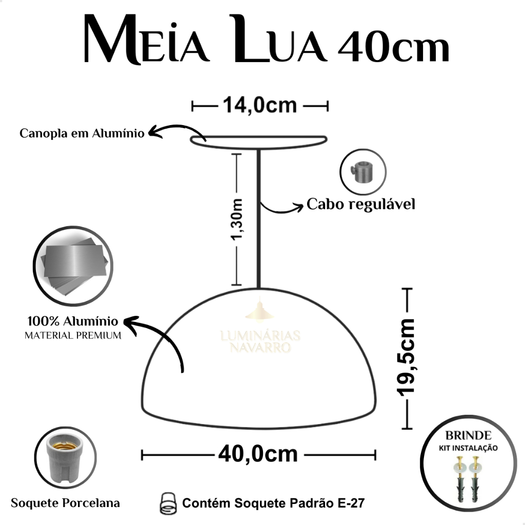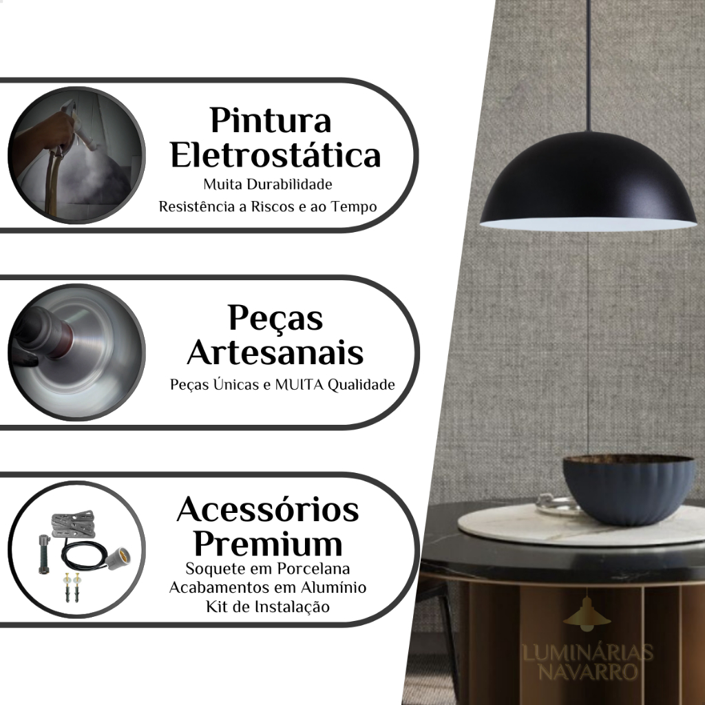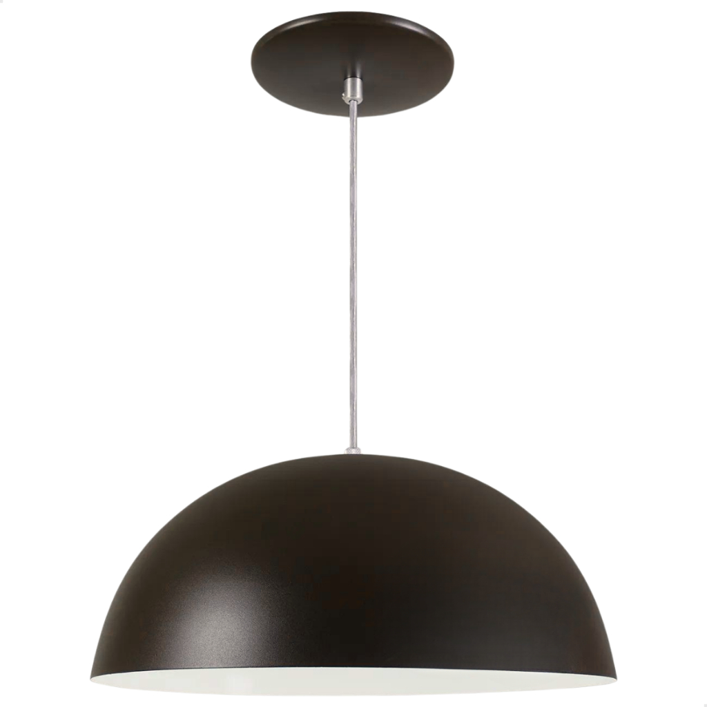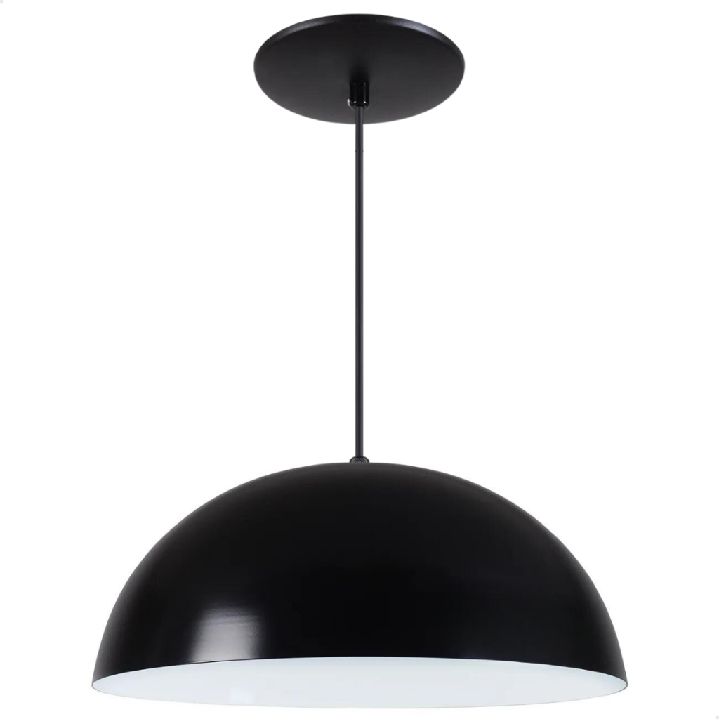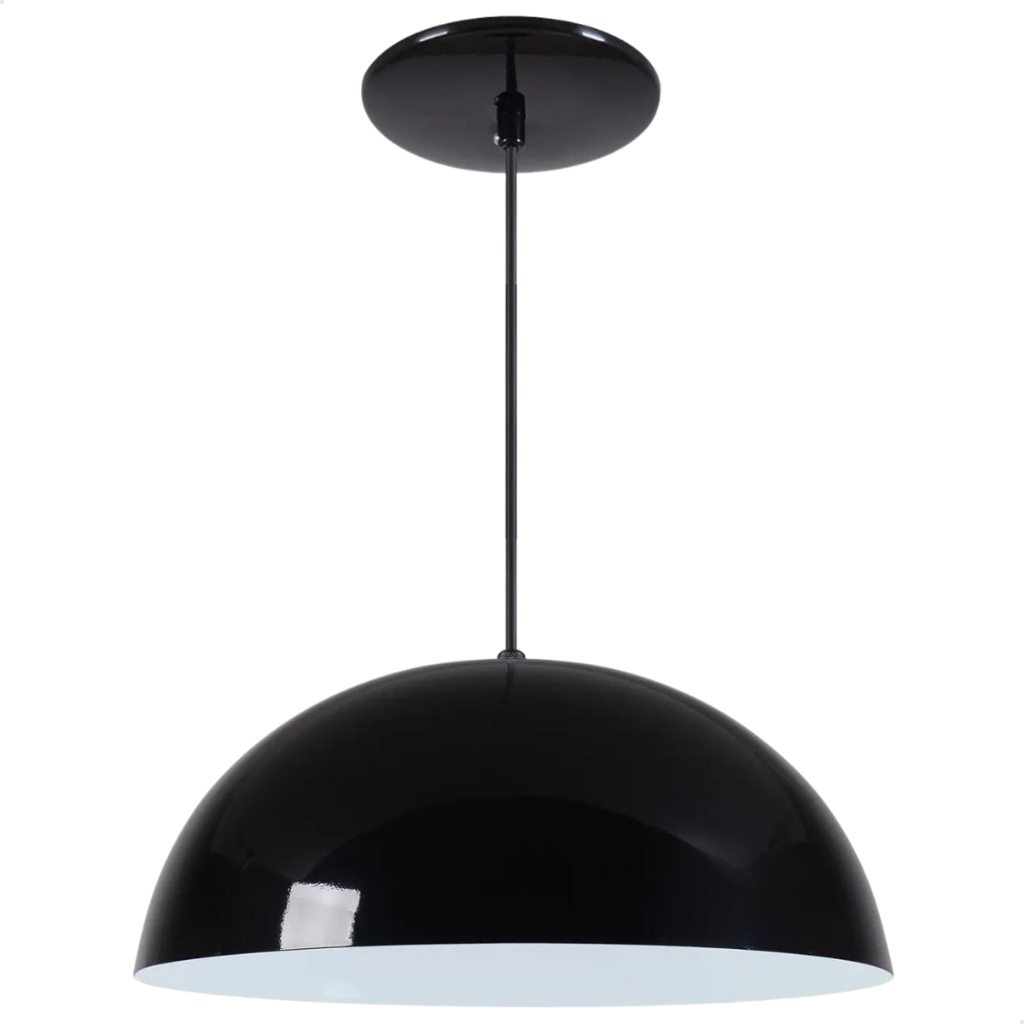 Luminária Lustre Pendente Meia Lua 40cm em Alumínio De Teto Preto Iluminação Balcão Cozinha 110/220v