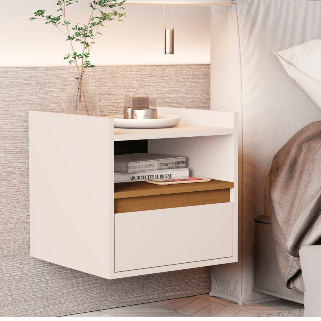 NOVIDADE APROVEITE MESA CABECEIRA SUSPENSA CRIADO AEREO DE PAREDE COM PORTA BASCULANTE E NICHO