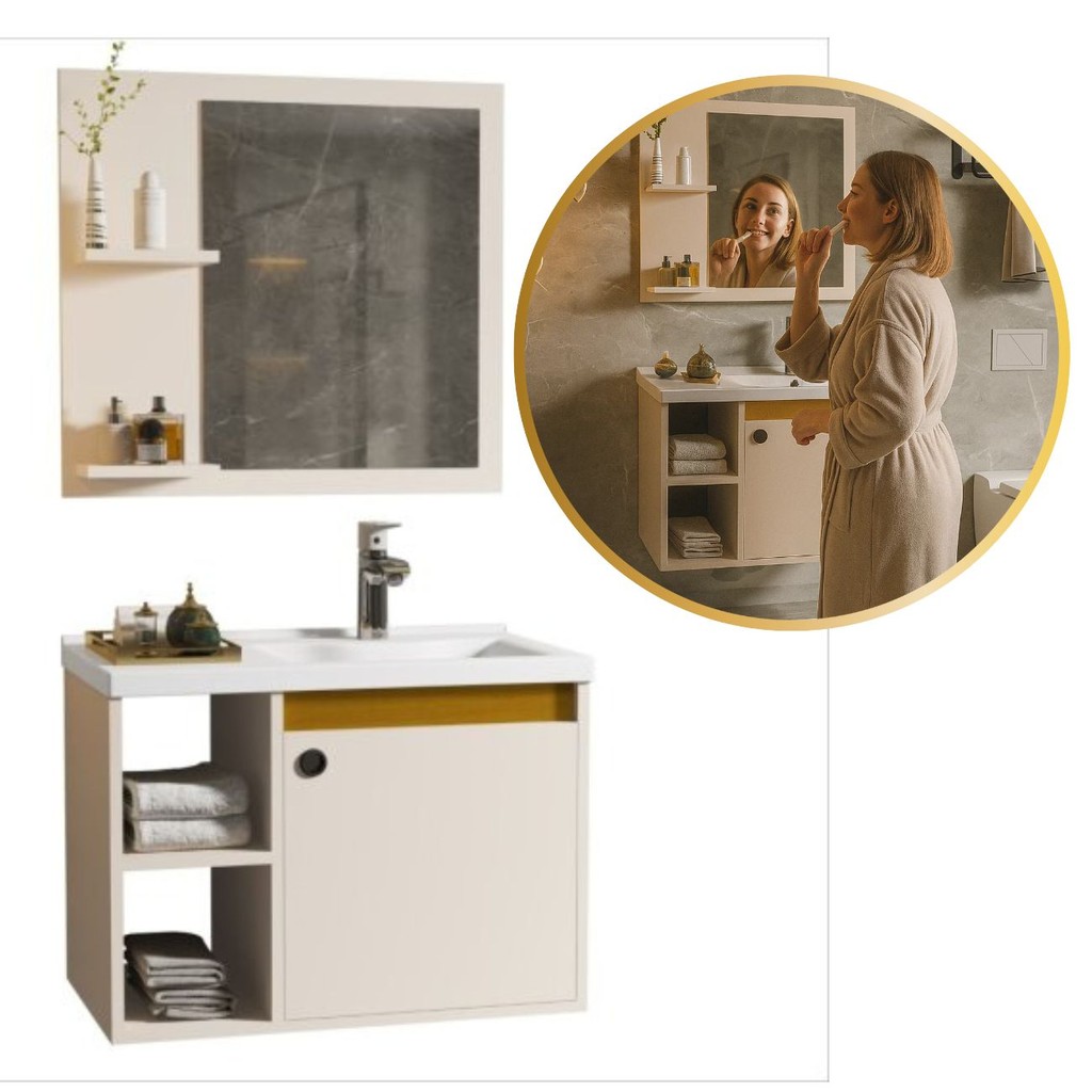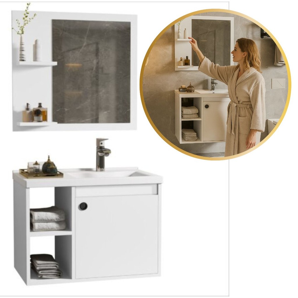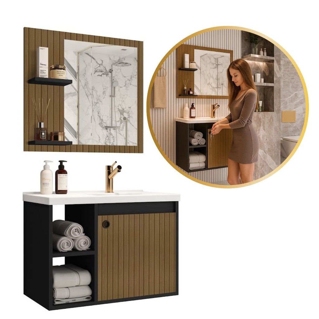 Conjunto Gabinete Banheiro 2 Nichos 60cm com Espelheira e Cuba Armario Para Banheiro Com Pia