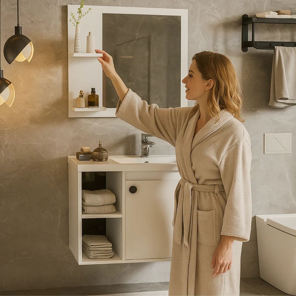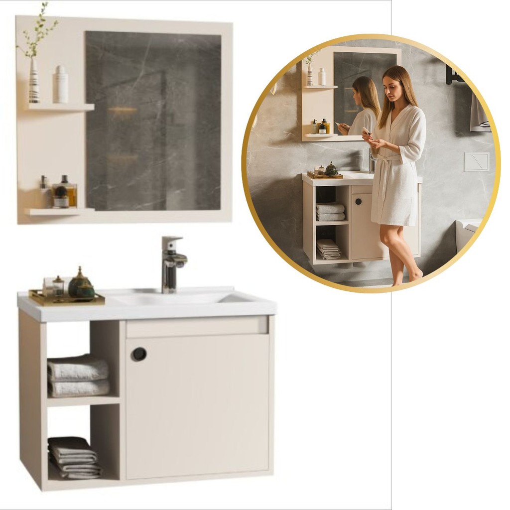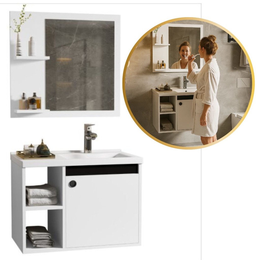 Conjunto Gabinete Banheiro 2 Nichos 60cm com Espelheira e Cuba Armario Para Banheiro Com Pia