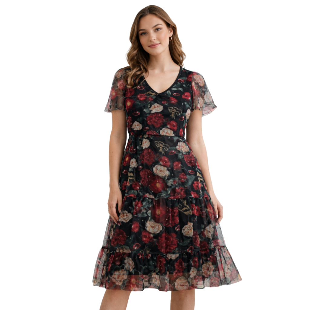 Vestido Feminino Midi em Tule com Forro Adulto e Plus Size