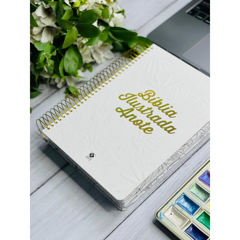 Bíblia Ilustrada Anote Tela Branca | NVT | Capa Dura Espiral