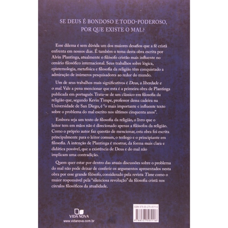 Livro Deus, a Liberdade e o Mal | Alvin Plantinga