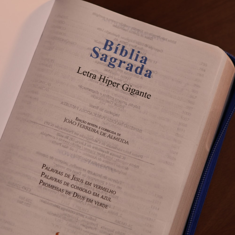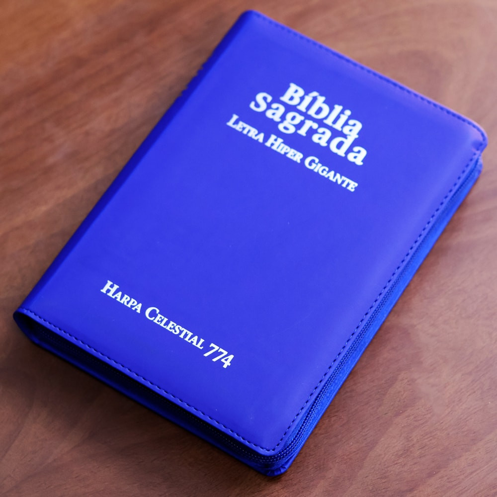 Bíblia Sagrada C/ Zíper | ARC | Letra Hipergigante | Capa Luxo Azul | Harpa Celestial 774