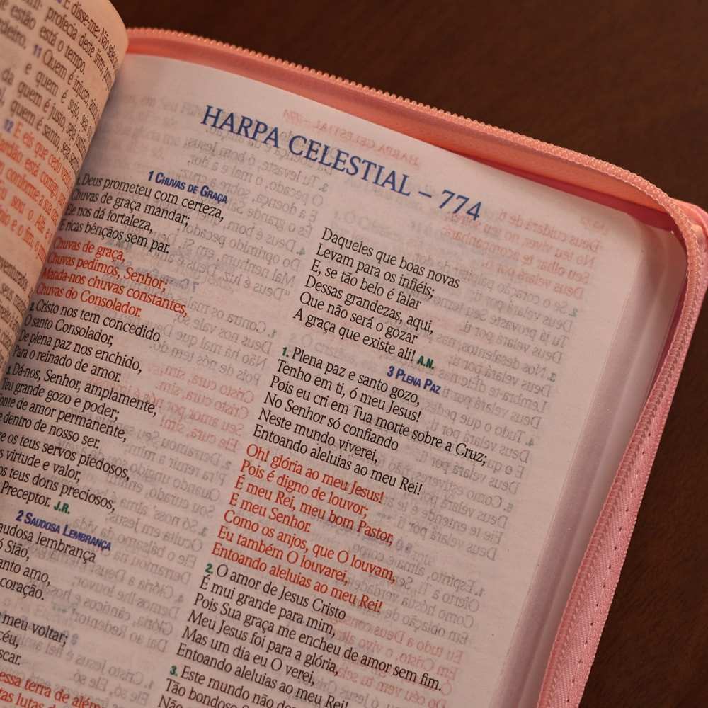 Bíblia Sagrada C/ Zíper | ARC | Letra Hipergigante | Capa Luxo Rosa | Harpa Celestial 774