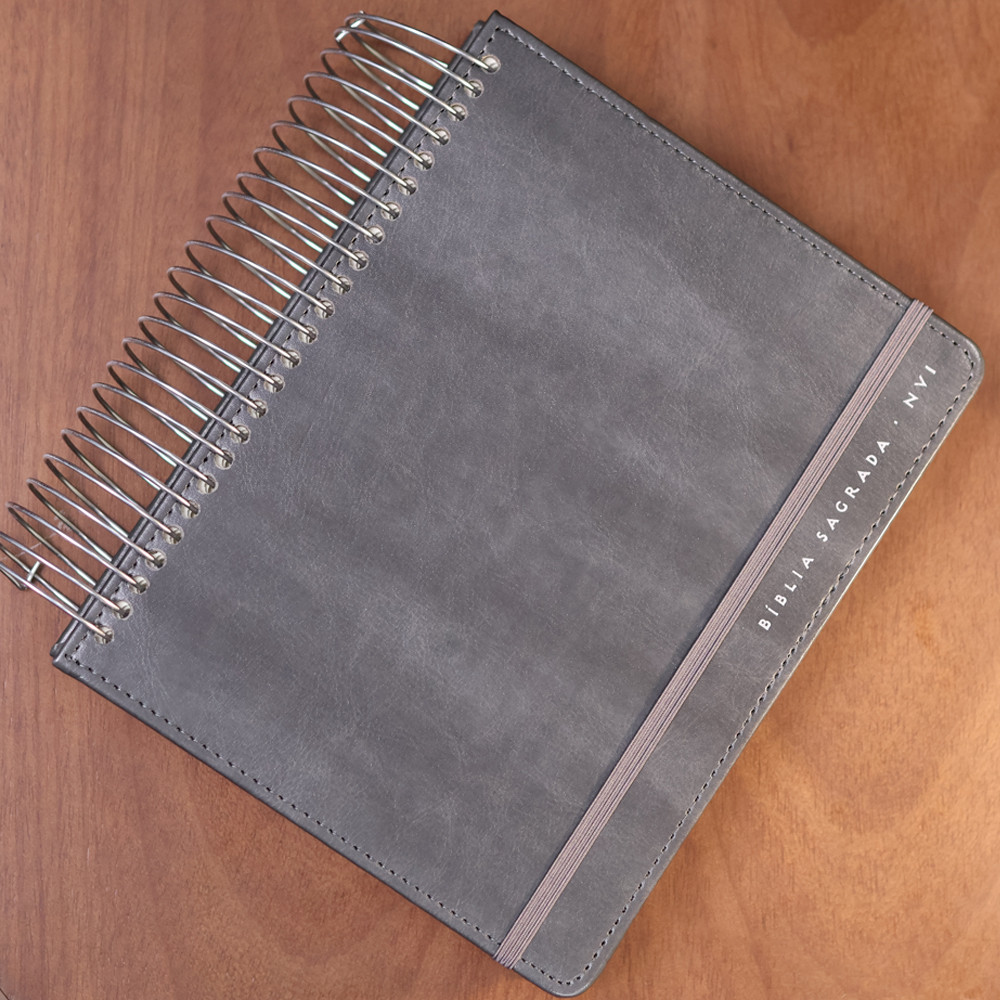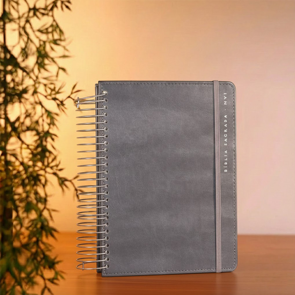 Bíblia Sagrada Espiral | NVI | Espaço Para Anotações | Capa Dura Cinza Com Elástico