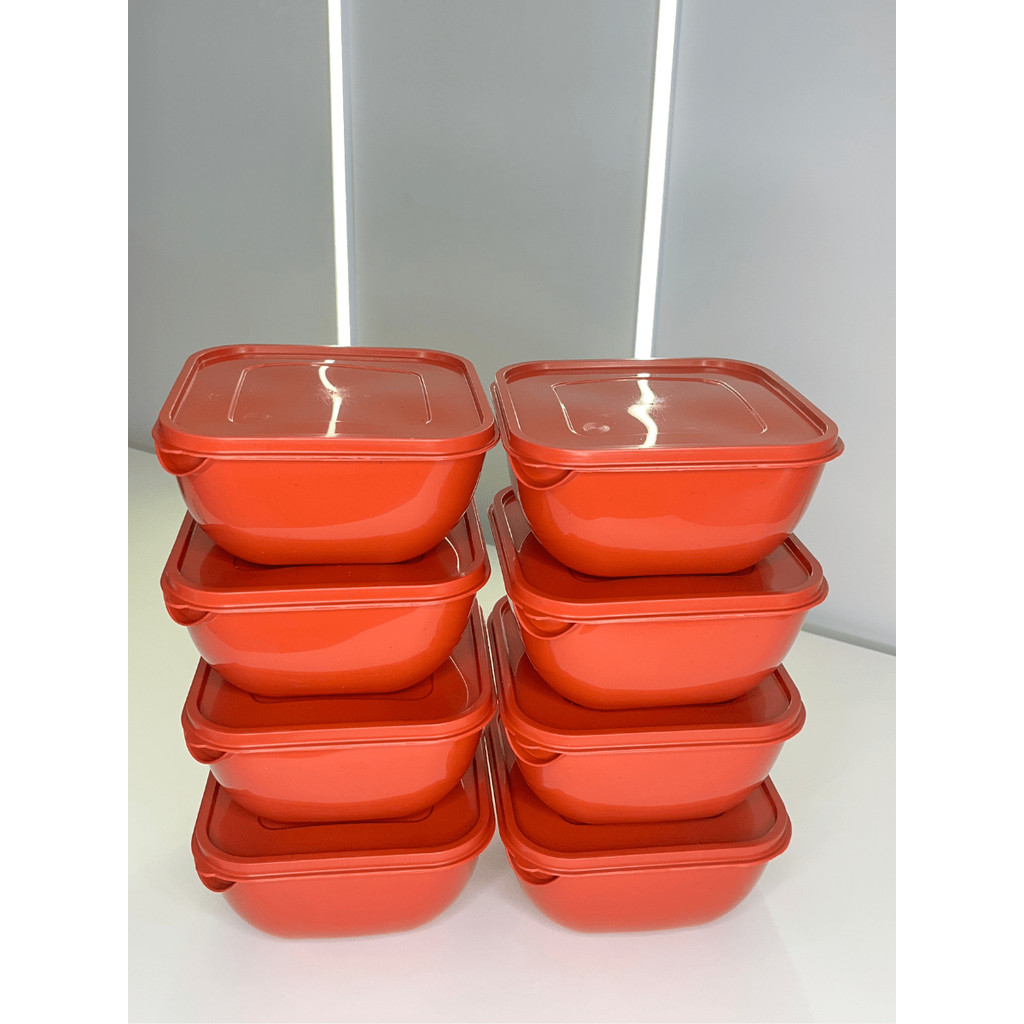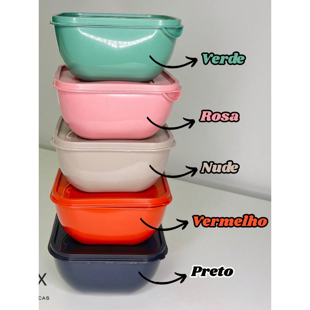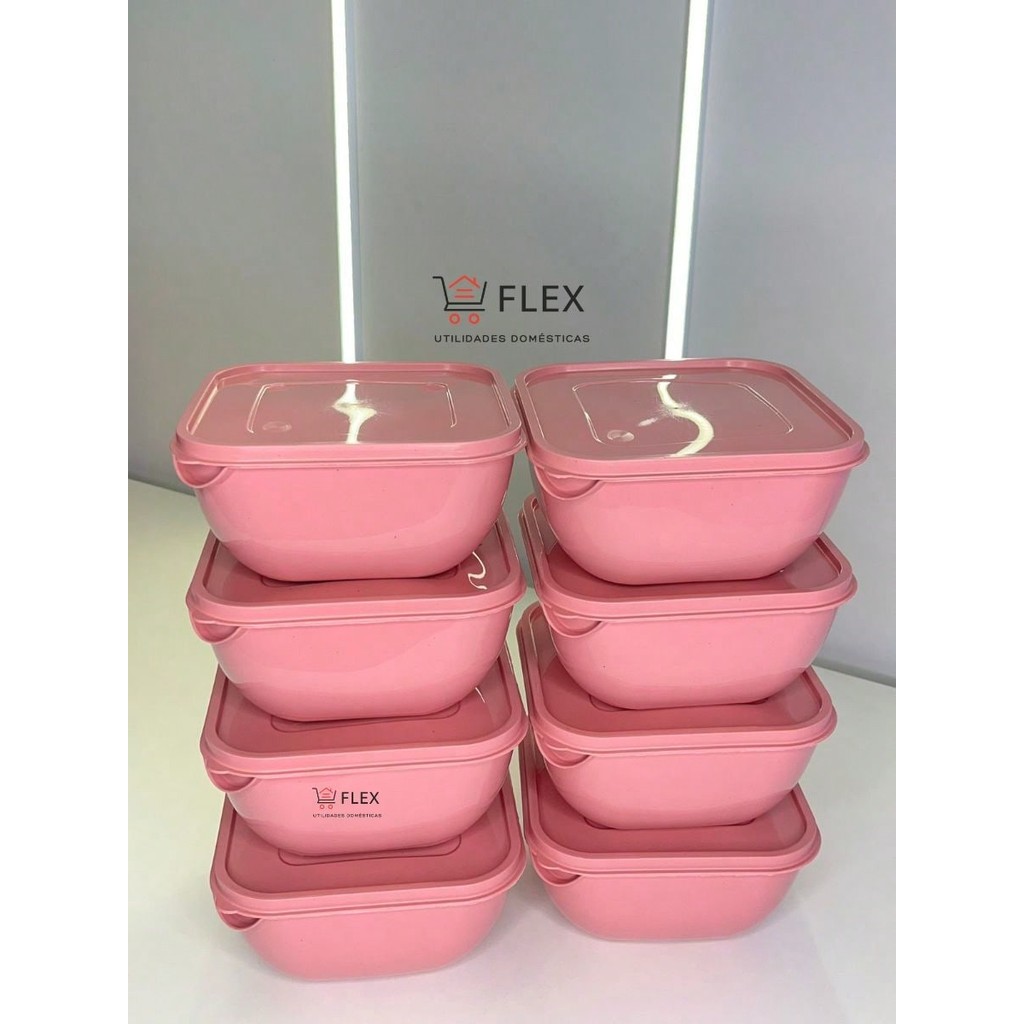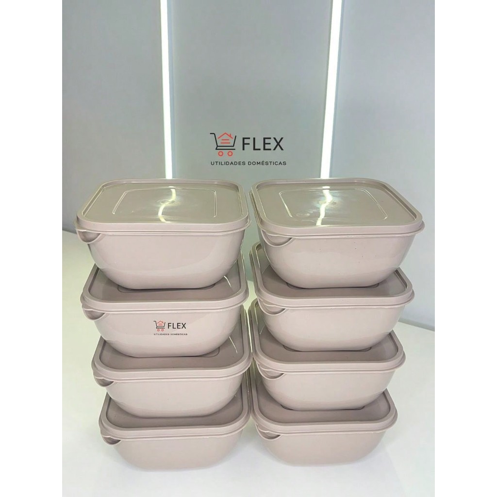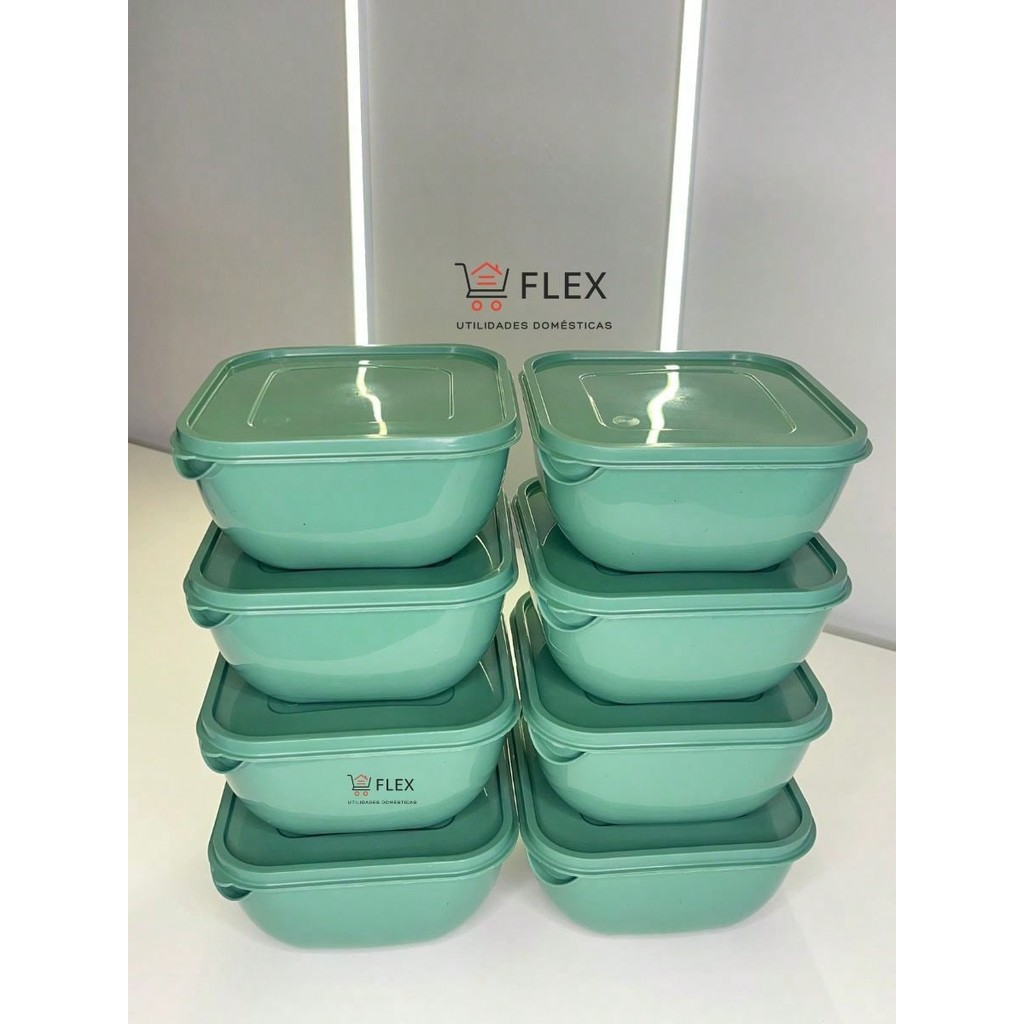 Conjunto com 8 Potes Plásticos - Formato Quadrado de 1 litro - Tapoer - Organizador de Alimentos - Micro-ondas e Freezer