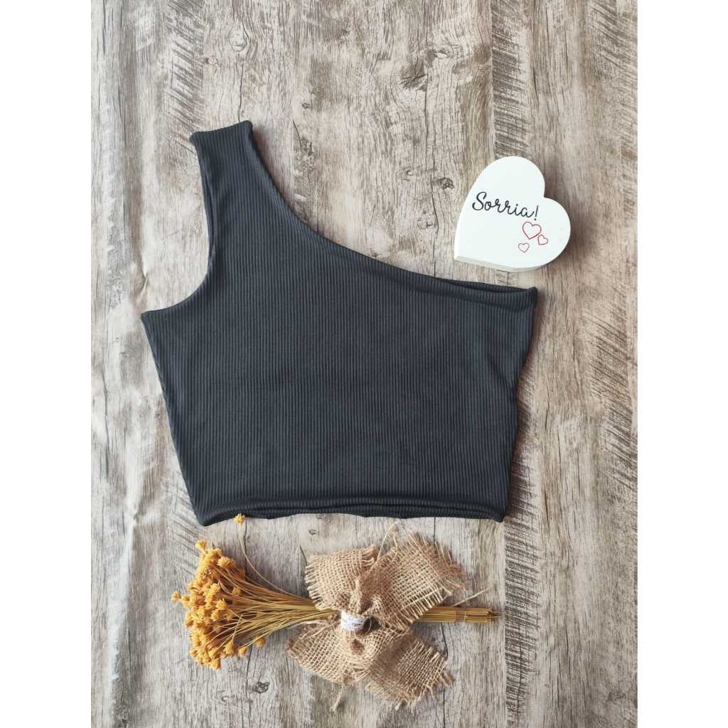 Kit 2 Blusa Croped Um Ombro Malha Plus Size Mula Manca