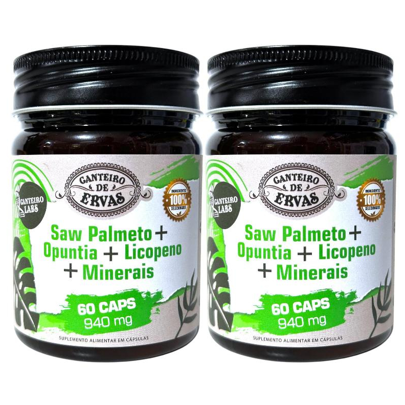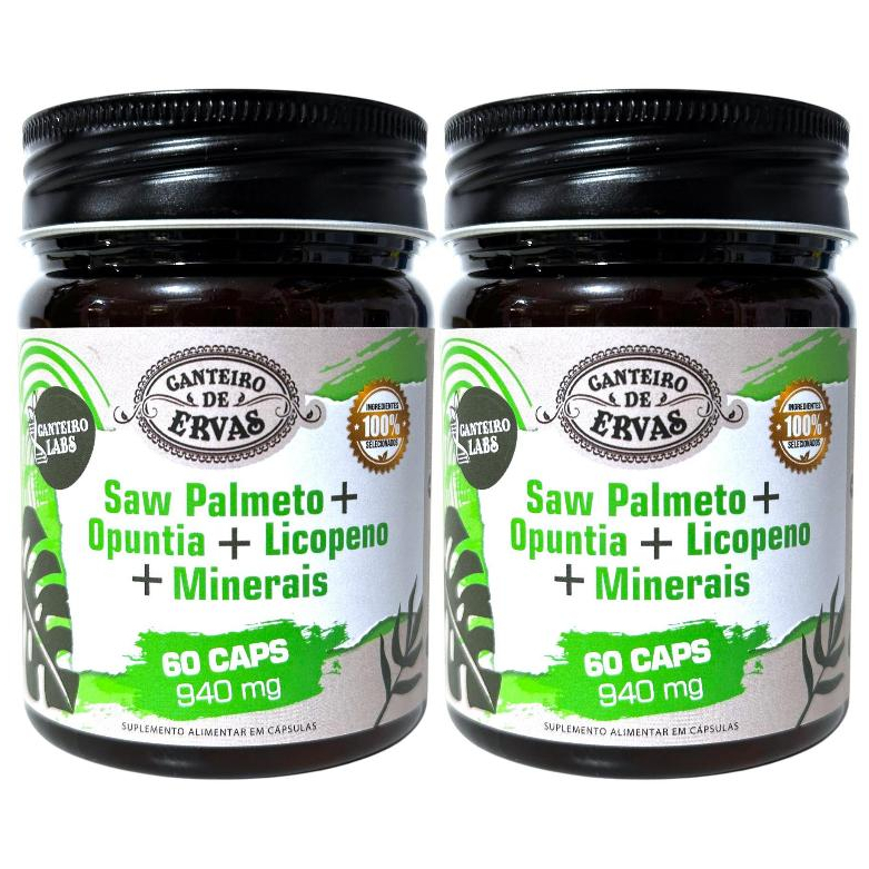 saw palmeto + opuntia + licopeno + minerais 940mg 60caps Canteiro de Ervas