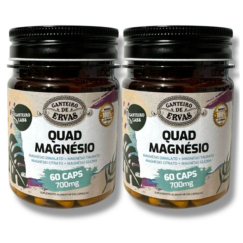Quad Magnésio Dimalato + Taurato + Citrato + Glicina 700mg 60caps Canteiro de Ervas
