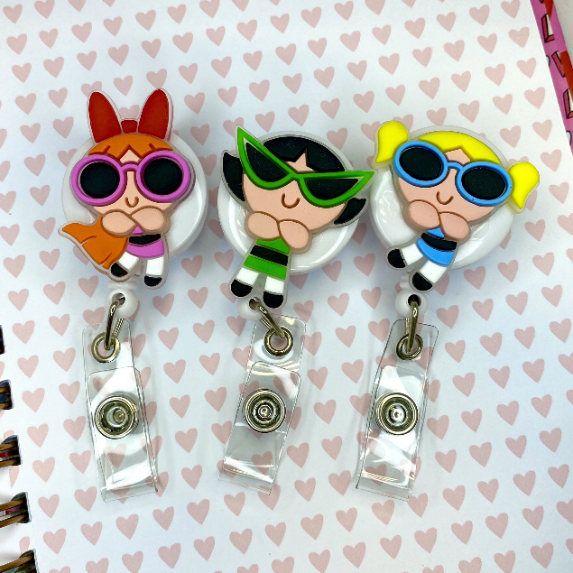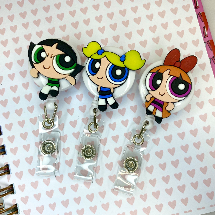 Porta Crachá Retrátil Personalizados Temático Meninas Super Poderosas Lindinha Florzinha Docinho