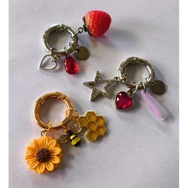 Chaveiro para Gloss com Argola Articulada Enfeites para Lip Gloss Blogueira Honey Mel Morango Chocolate Cereja Presente