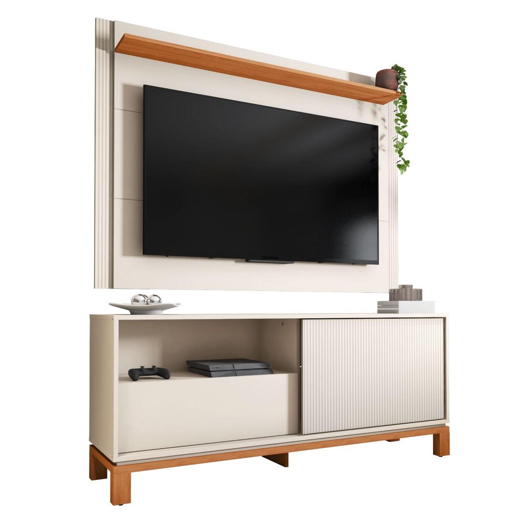 Bancada Rack Com Painel Para Tv Até 55 Polegadas Jace Bege